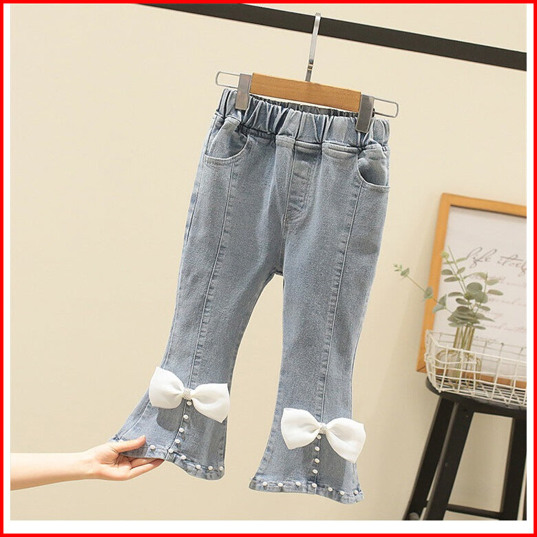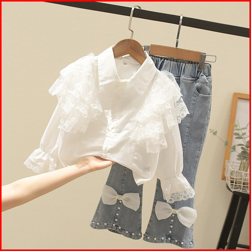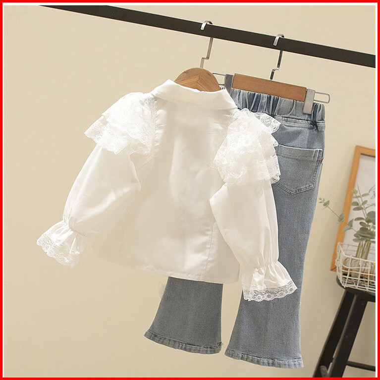 363605 - Setelan Blouse Celana Panjang Jeans Cutbray Anak Perempuan - Motif Shoulder Lace