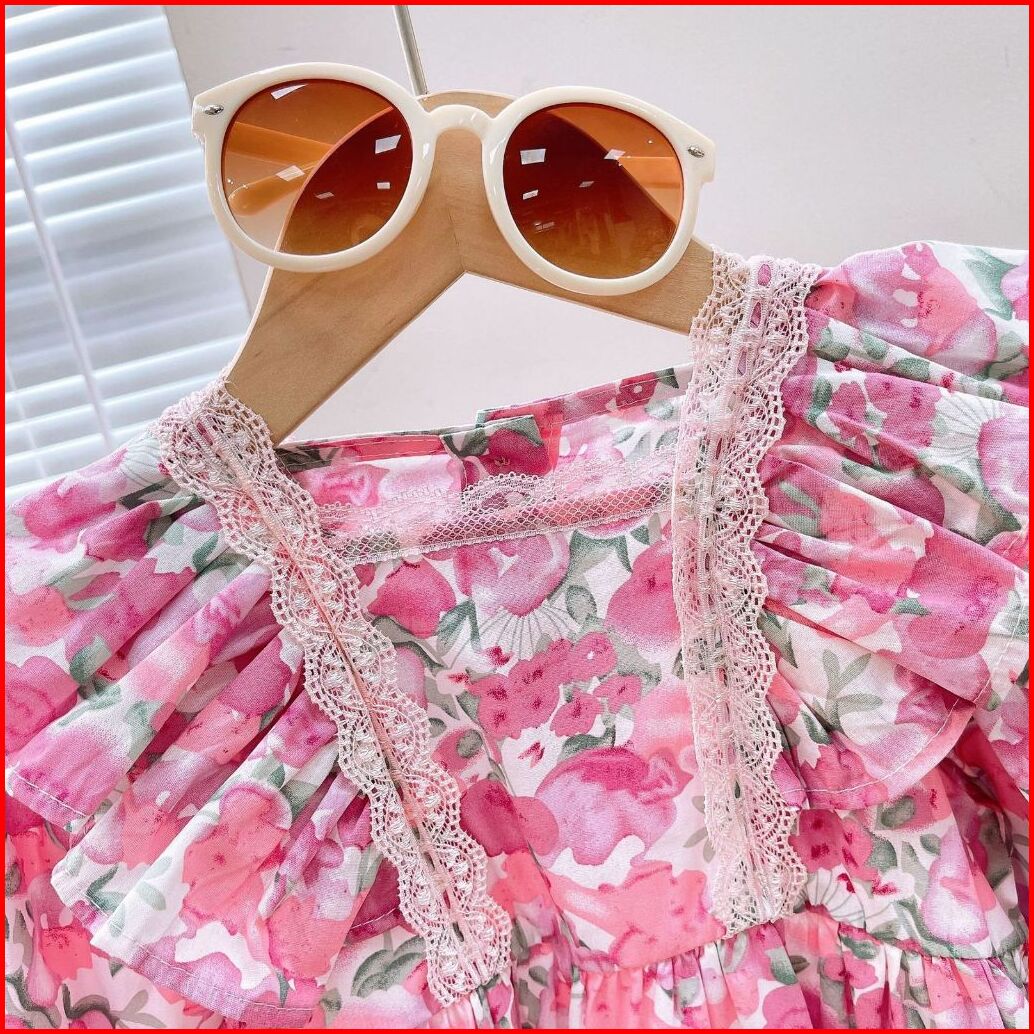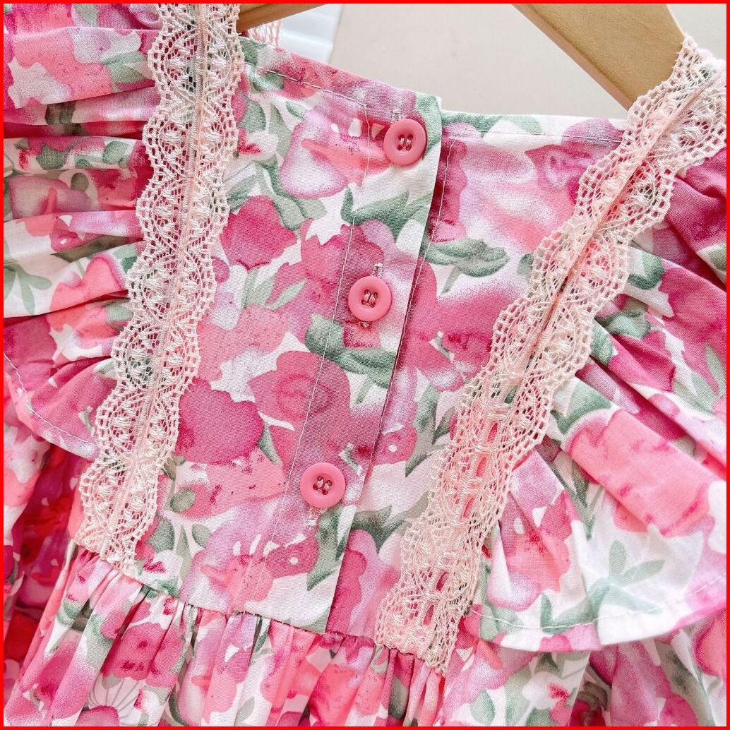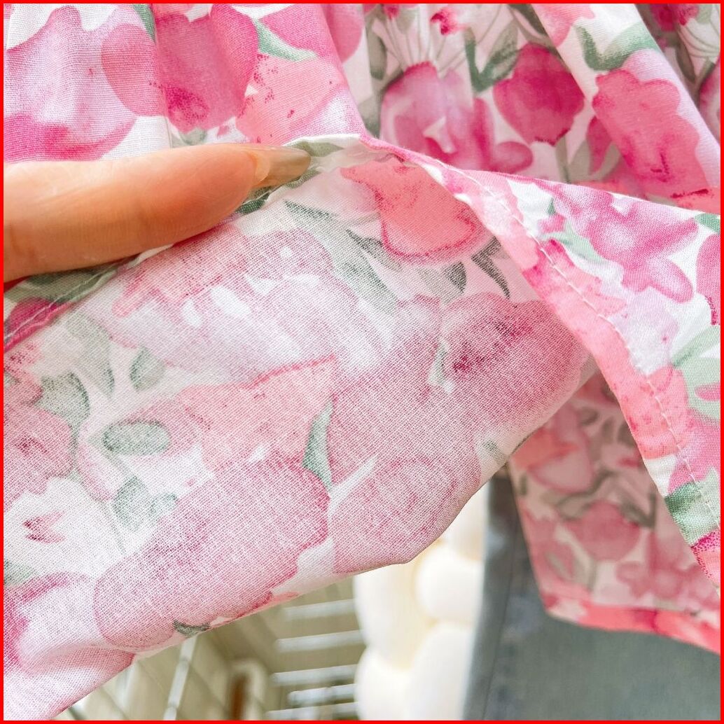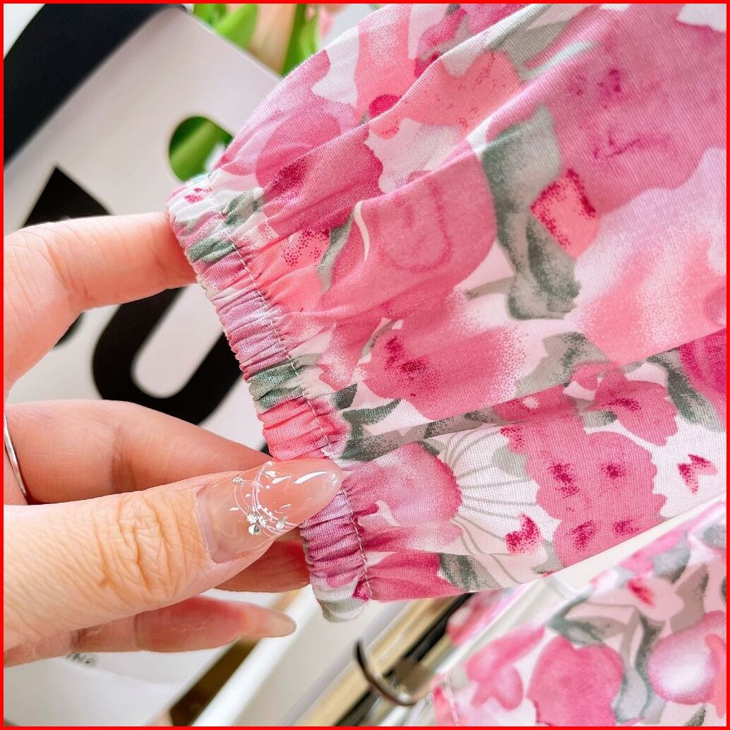 Loli-jkt Bs- 743 Setelan Anak Blouse Pink Full Bunga Celana Cherry Jeans Panjang Size 100-140