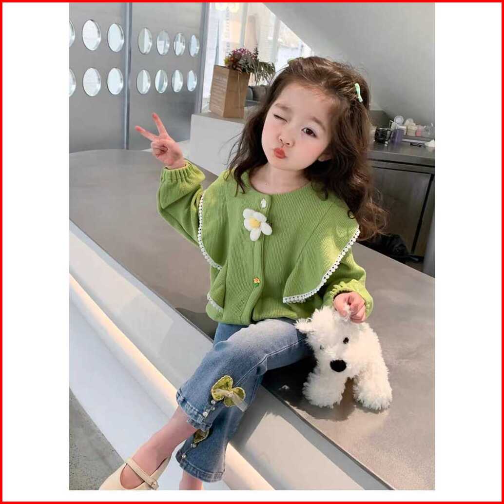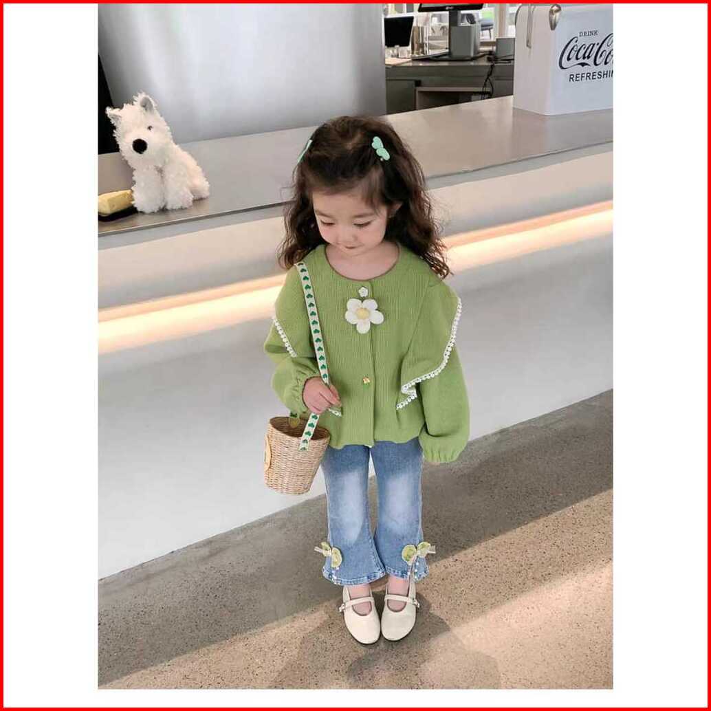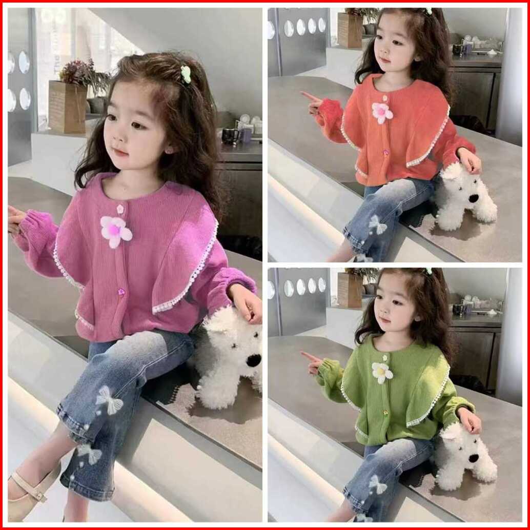 Kf Cat Setelan Baju Anak Perempuan Lengan Panjang Bahan Knit Rajut Casual Style Usia 1-4 Tahun