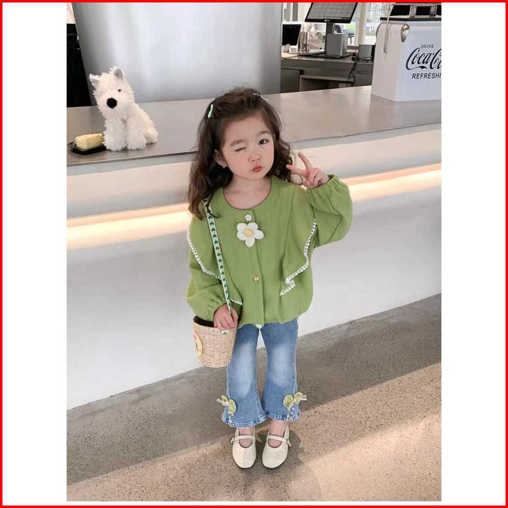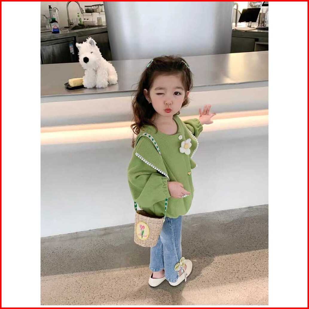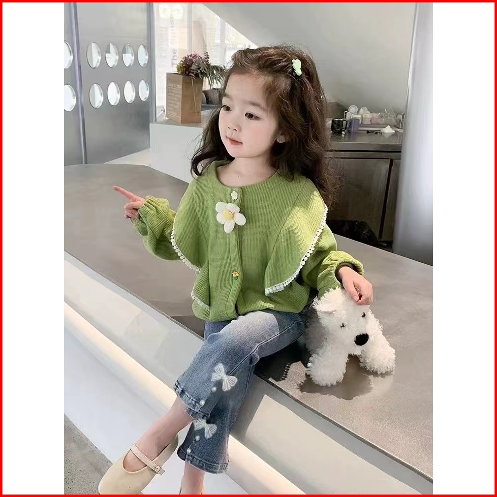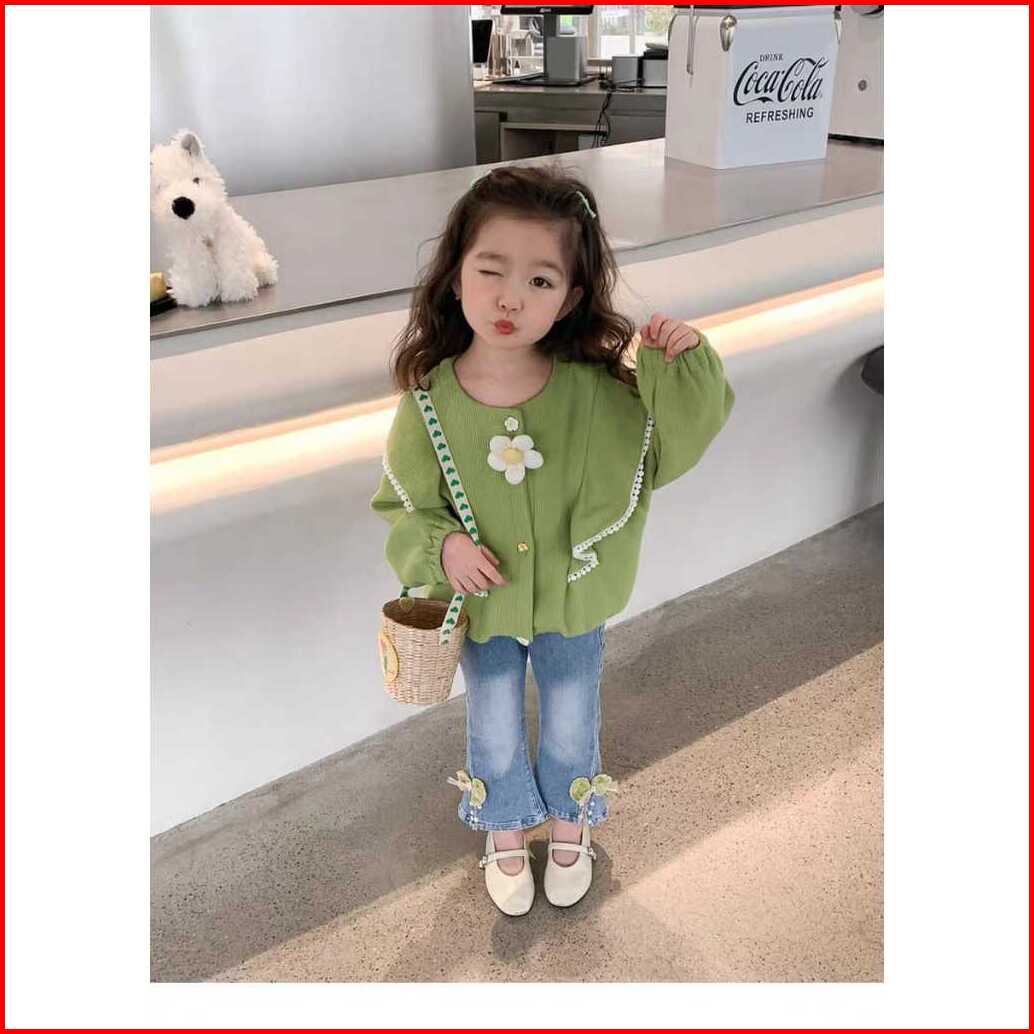 Kf Cat Setelan Baju Anak Perempuan Lengan Panjang Bahan Knit Rajut Casual Style Usia 1-4 Tahun