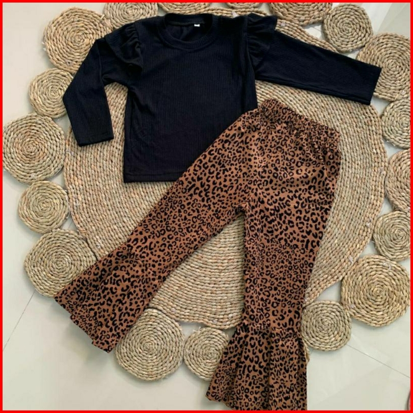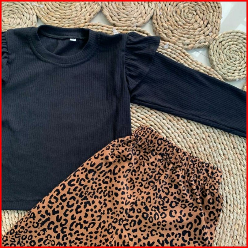 Ayra Girl Set Setelan Anak Perempuan Import Ala Korea Motif Leopard Kekinian