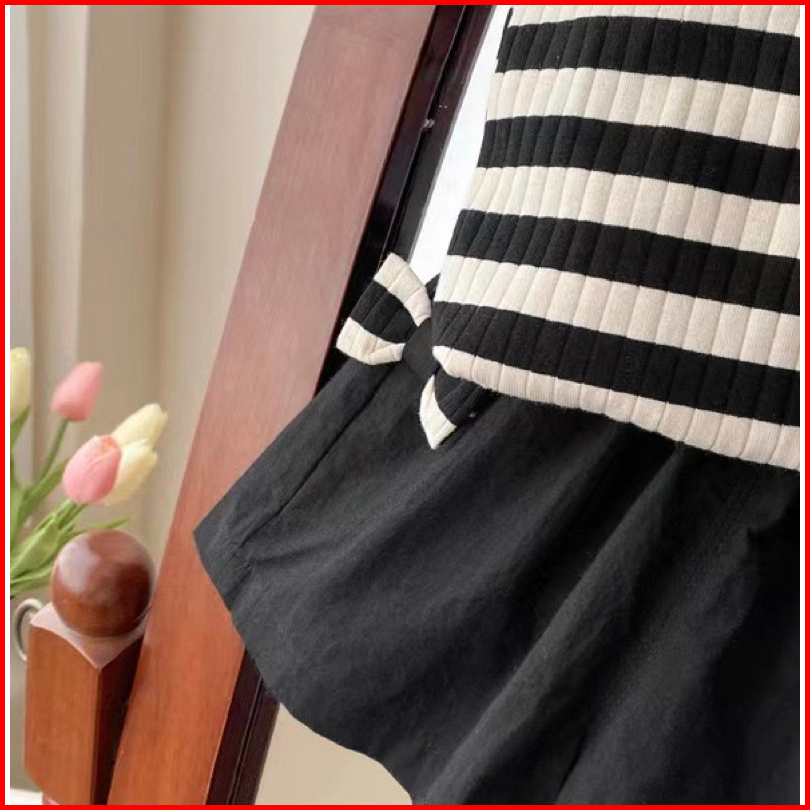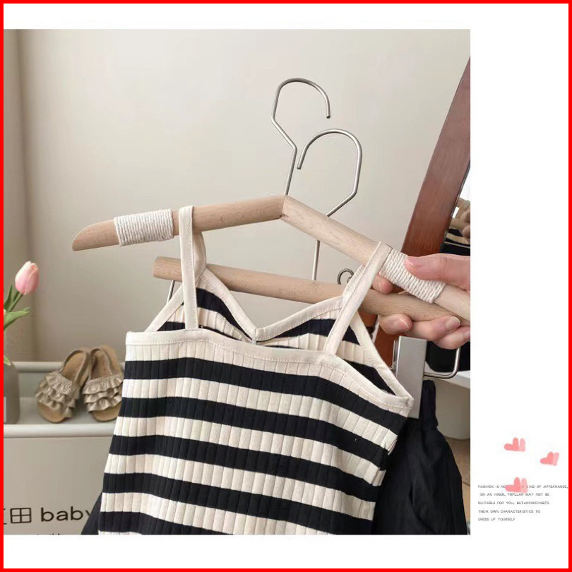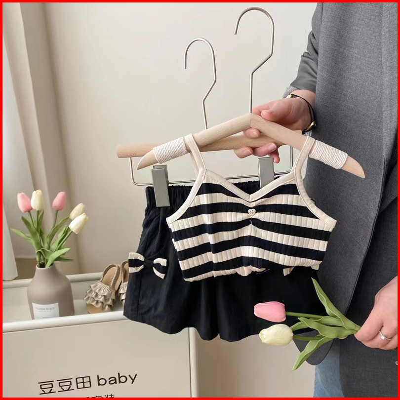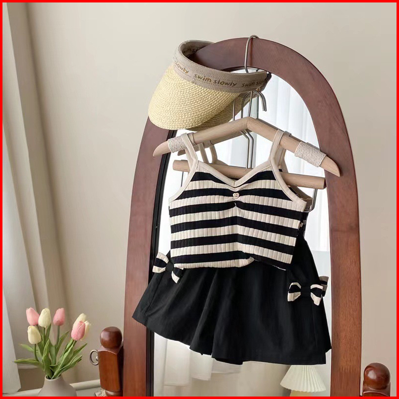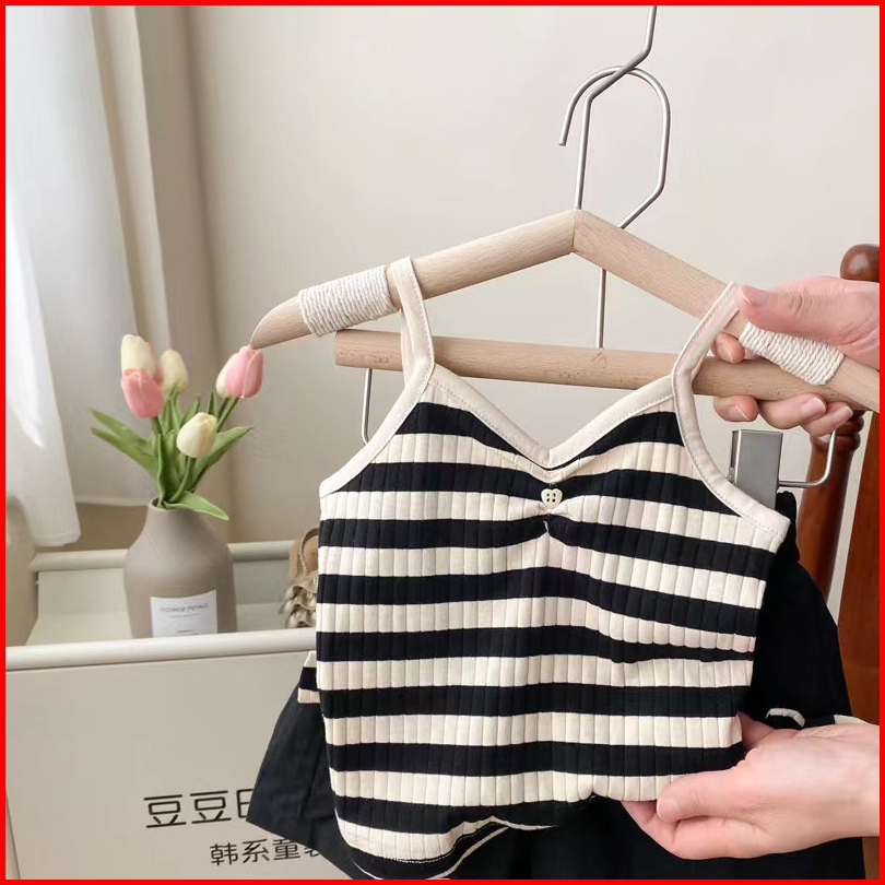 Mr.gabor Setelan Anak Perempuan Tanktop Hitam Putih Garis Dan Celana Pendek Shalom Set