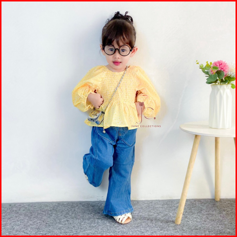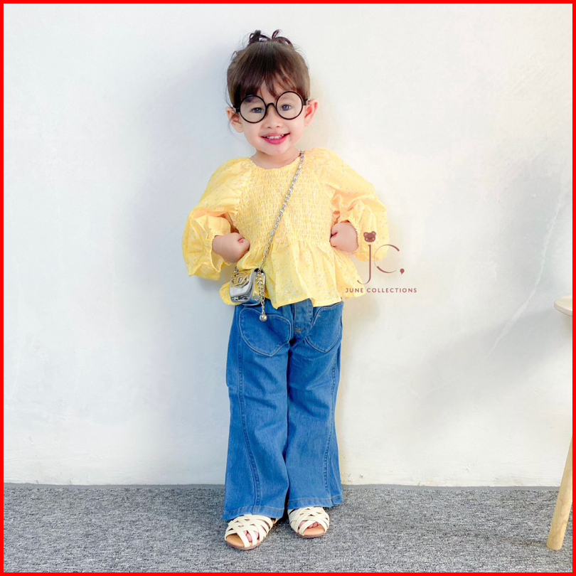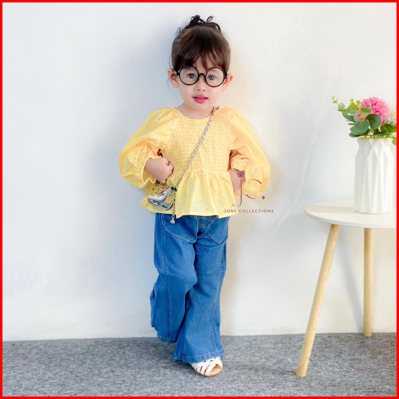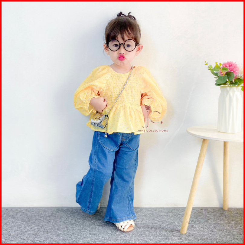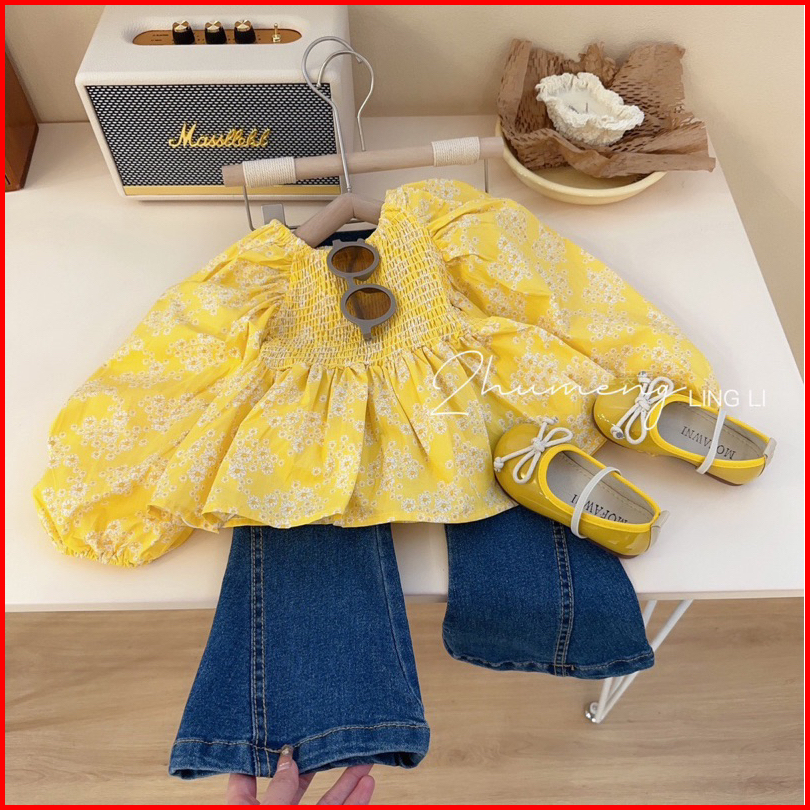 Junecollections Setelan Hits Anak Perempuan Motif Bunga Kuning Setelan Celana Panjang Anak Perempuan 612