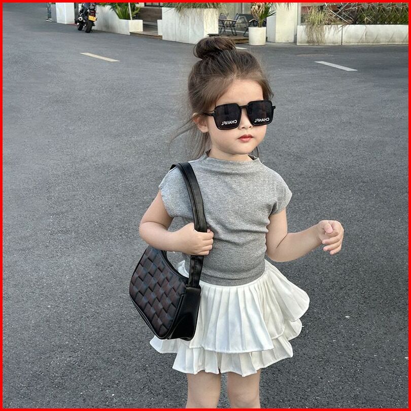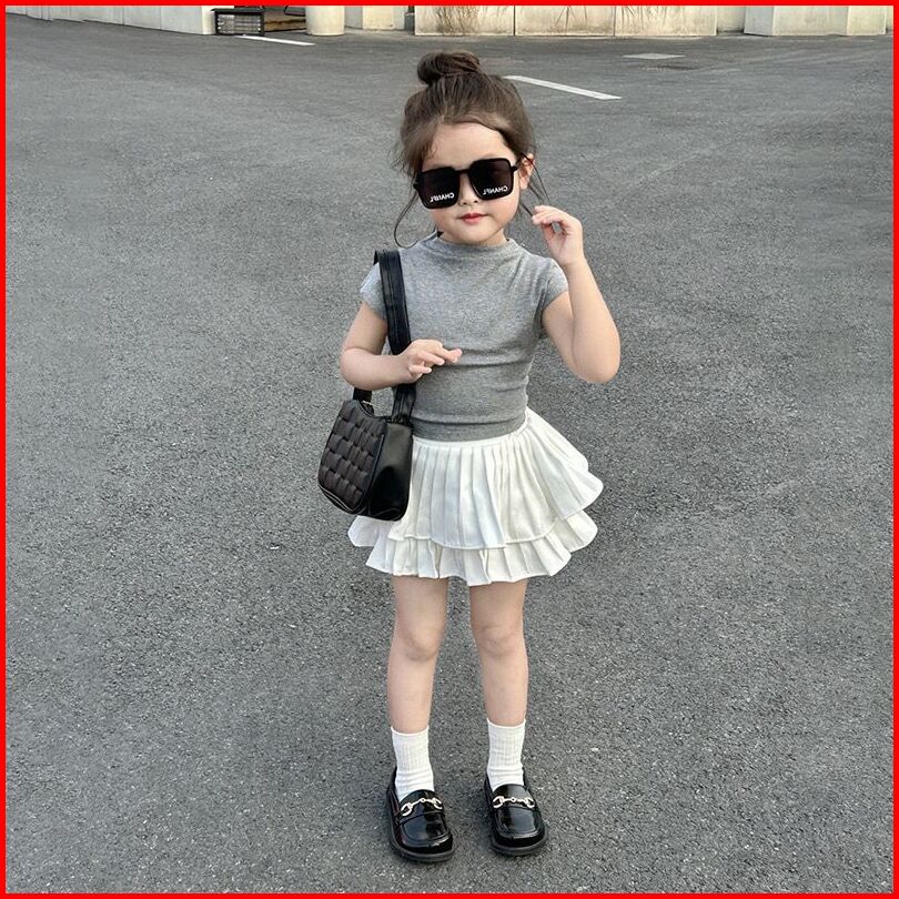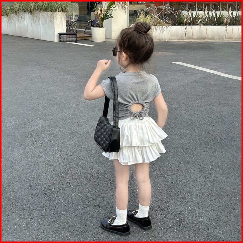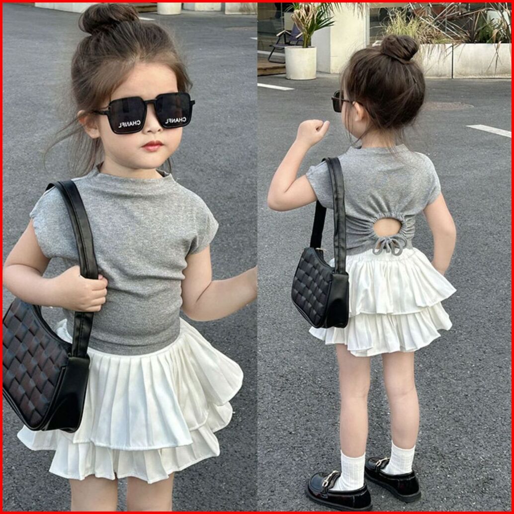 Kidsfashionkoleksi Setelan Anak Perempuan Back Grey Ruffle Skirt Korean Fashion Style