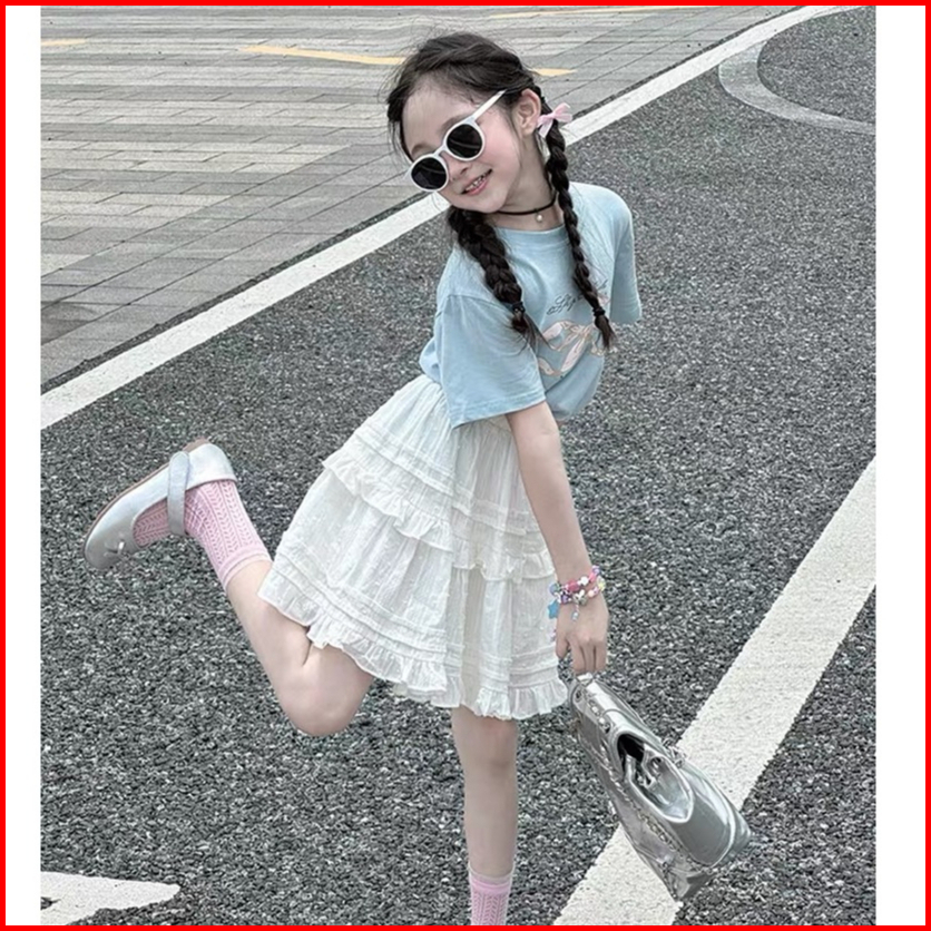 Korean Style Setelan Fashion Kupu-kupu Huruf Biru T-shirt Ballet Gaya Tutu Putri Pleated Skirt