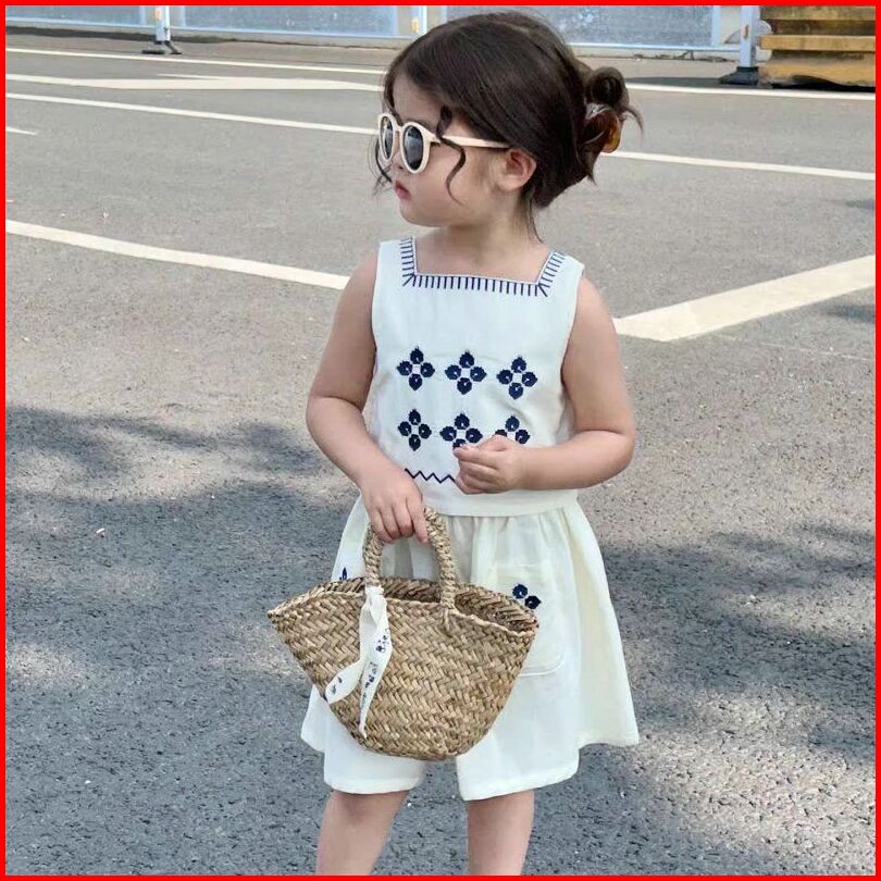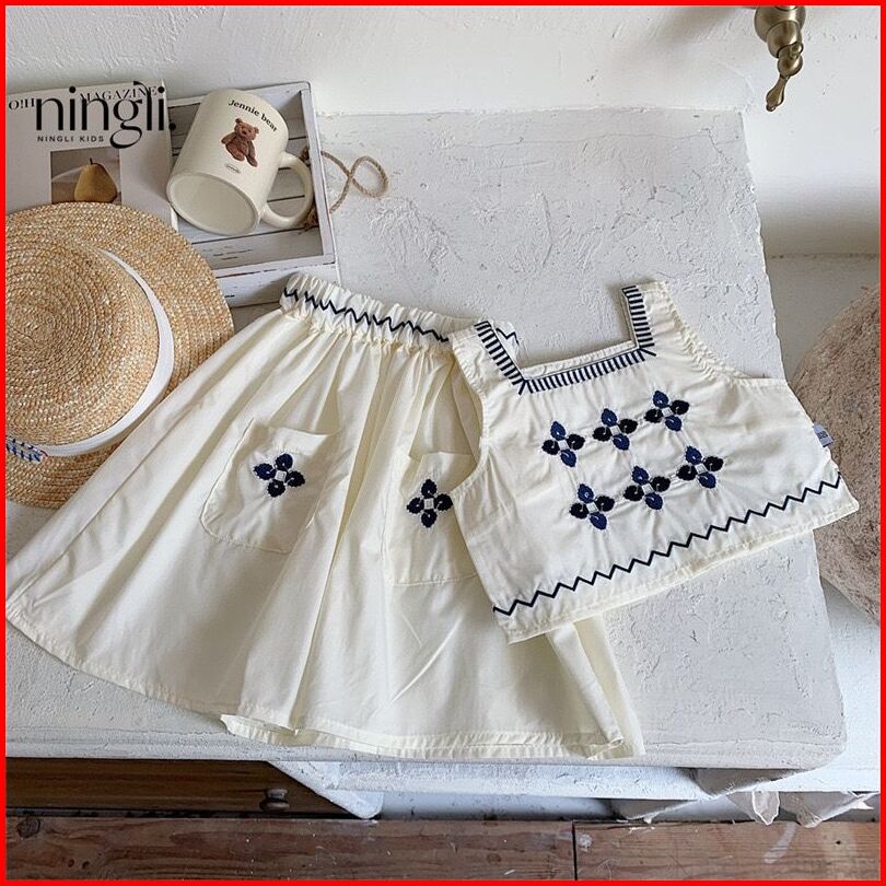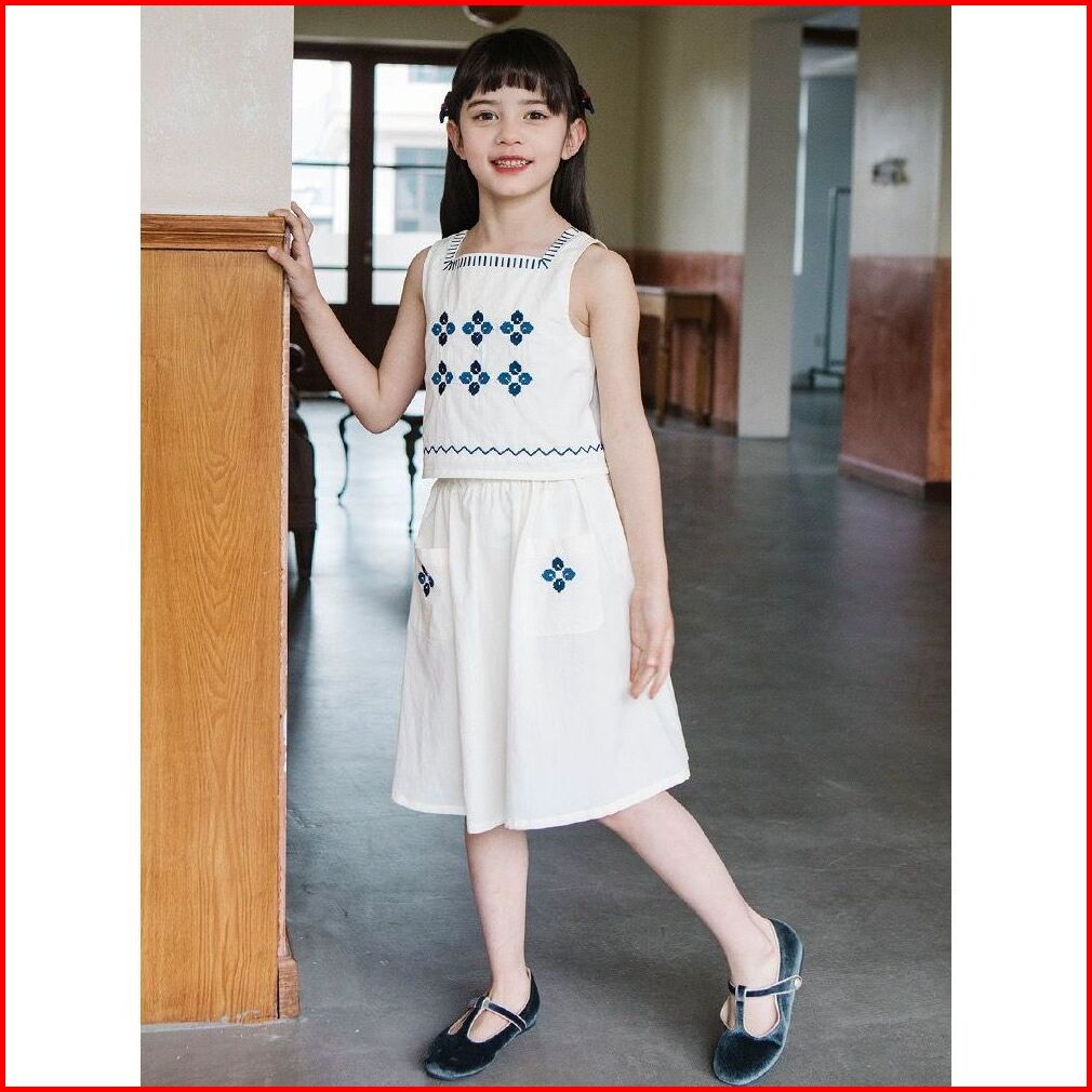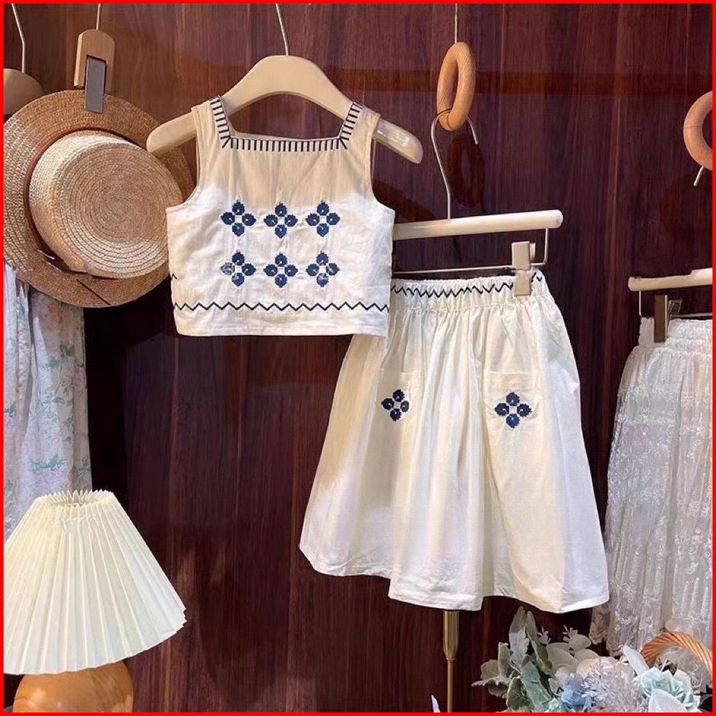 Kidsfashionkoleksi Setelan Rok Clover White Bordir Anak Perempuan