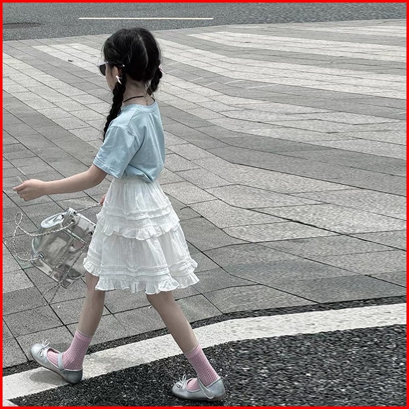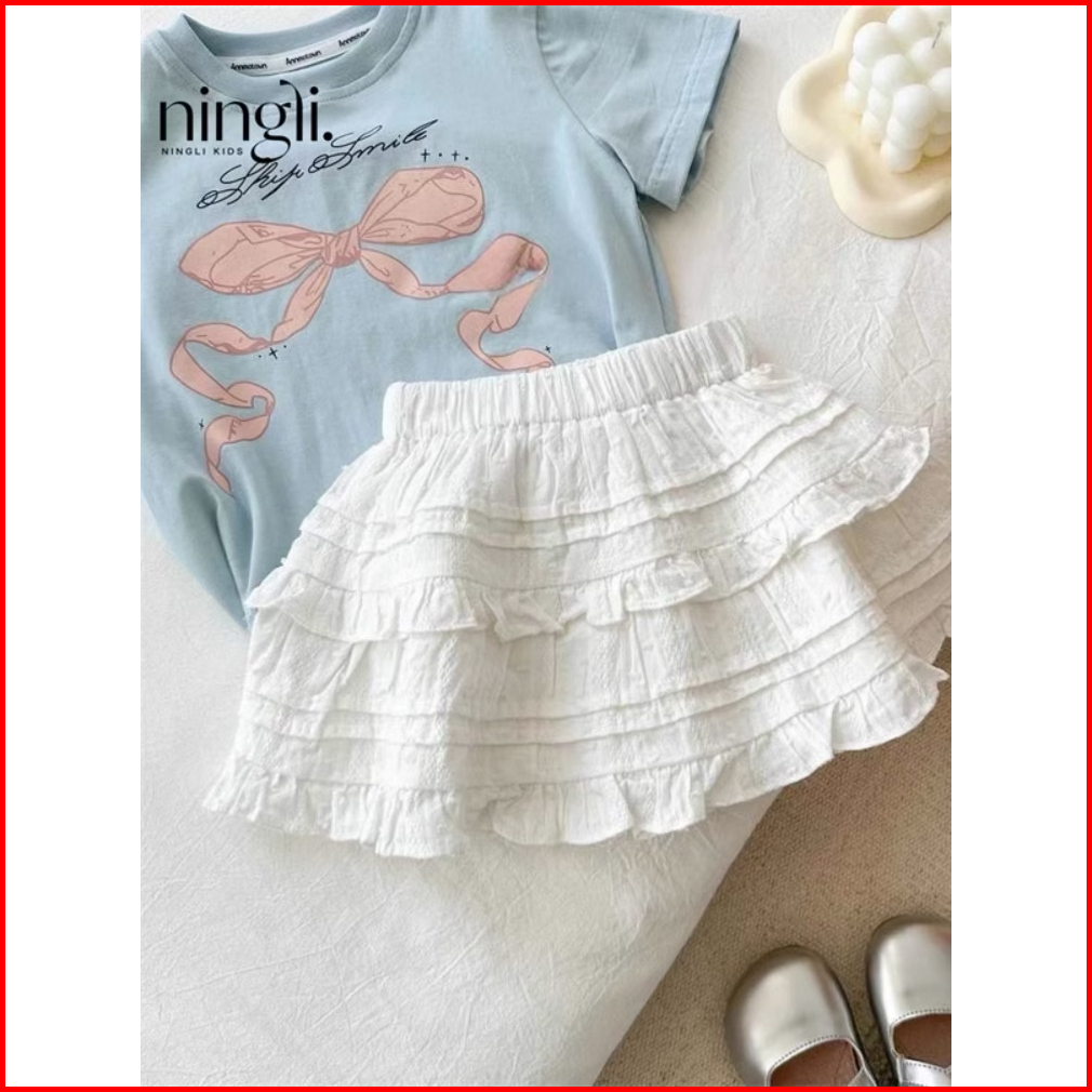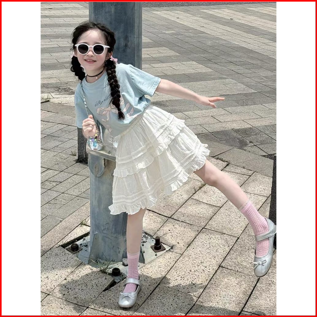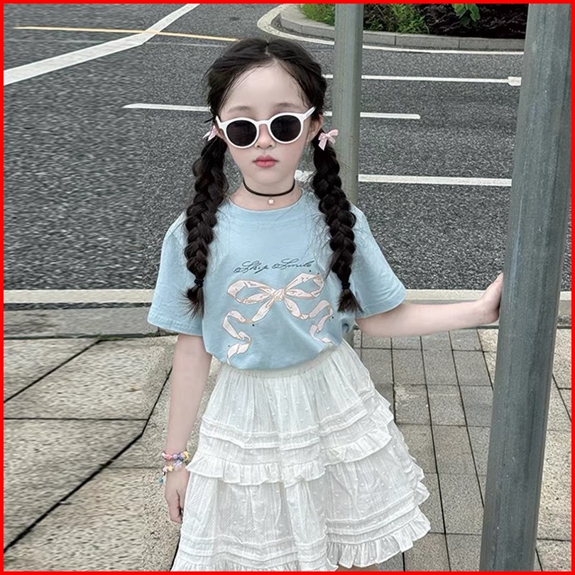 Korean Style Setelan Fashion Kupu-kupu Huruf Biru T-shirt Ballet Gaya Tutu Putri Pleated Skirt