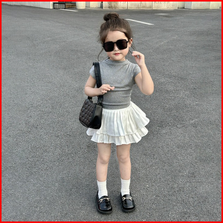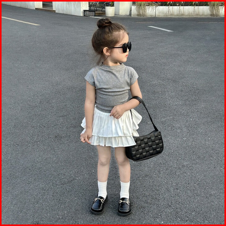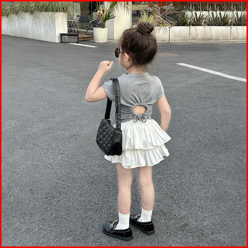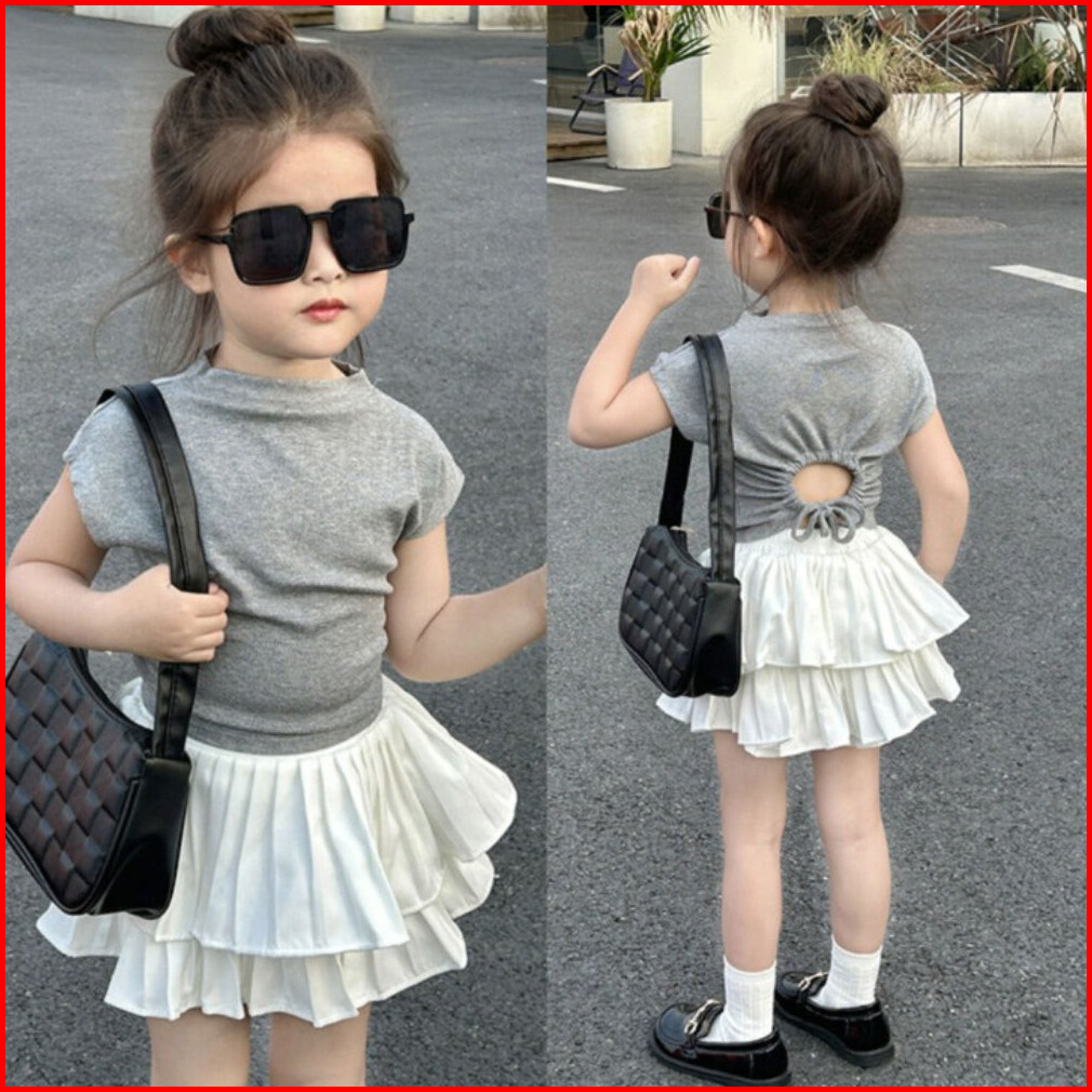 5071006 - Setelan Baju Backless Bawahan Rok Mini Fashion Anak Perempuan - Motif Smooth Casual