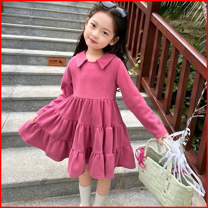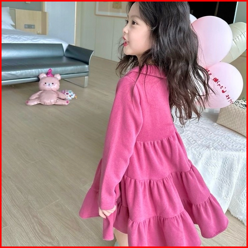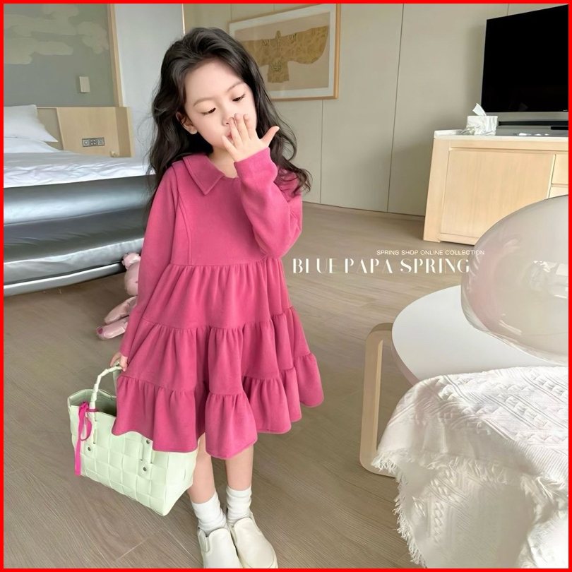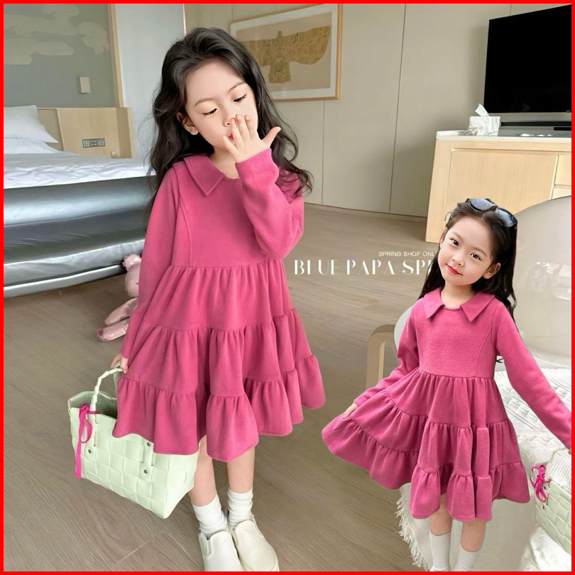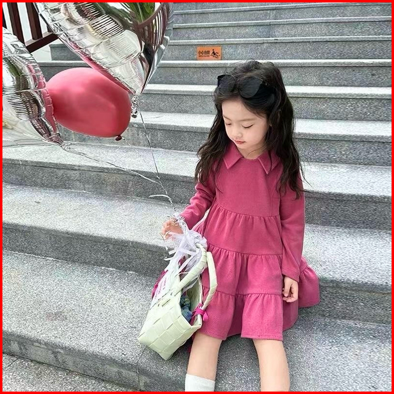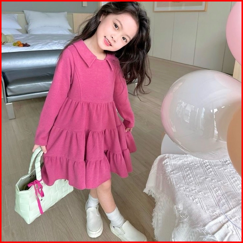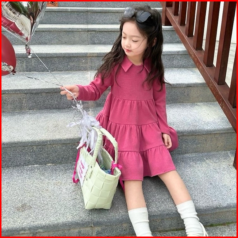 2-10tahun Dress Korean Vintage Gaun Pink Fuschia Baju Anak Perempuan Terbaru