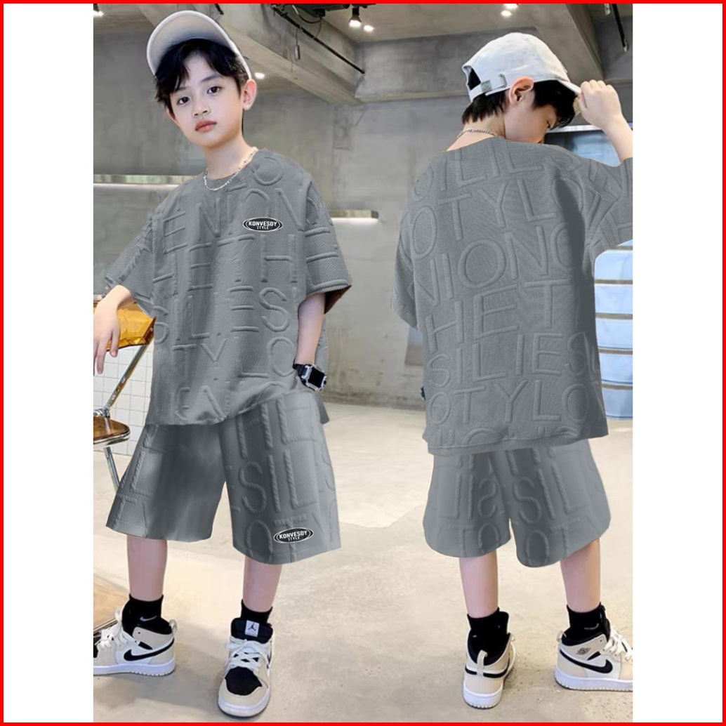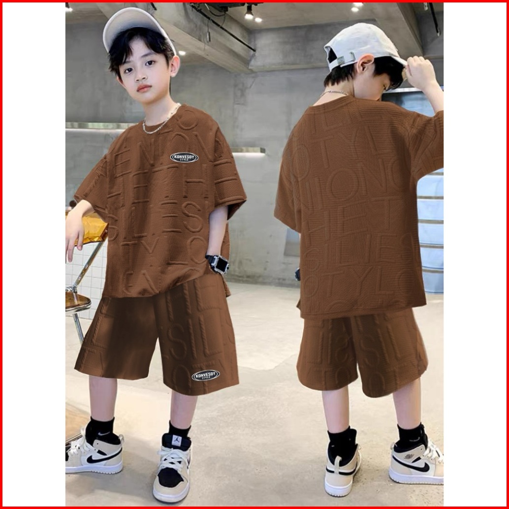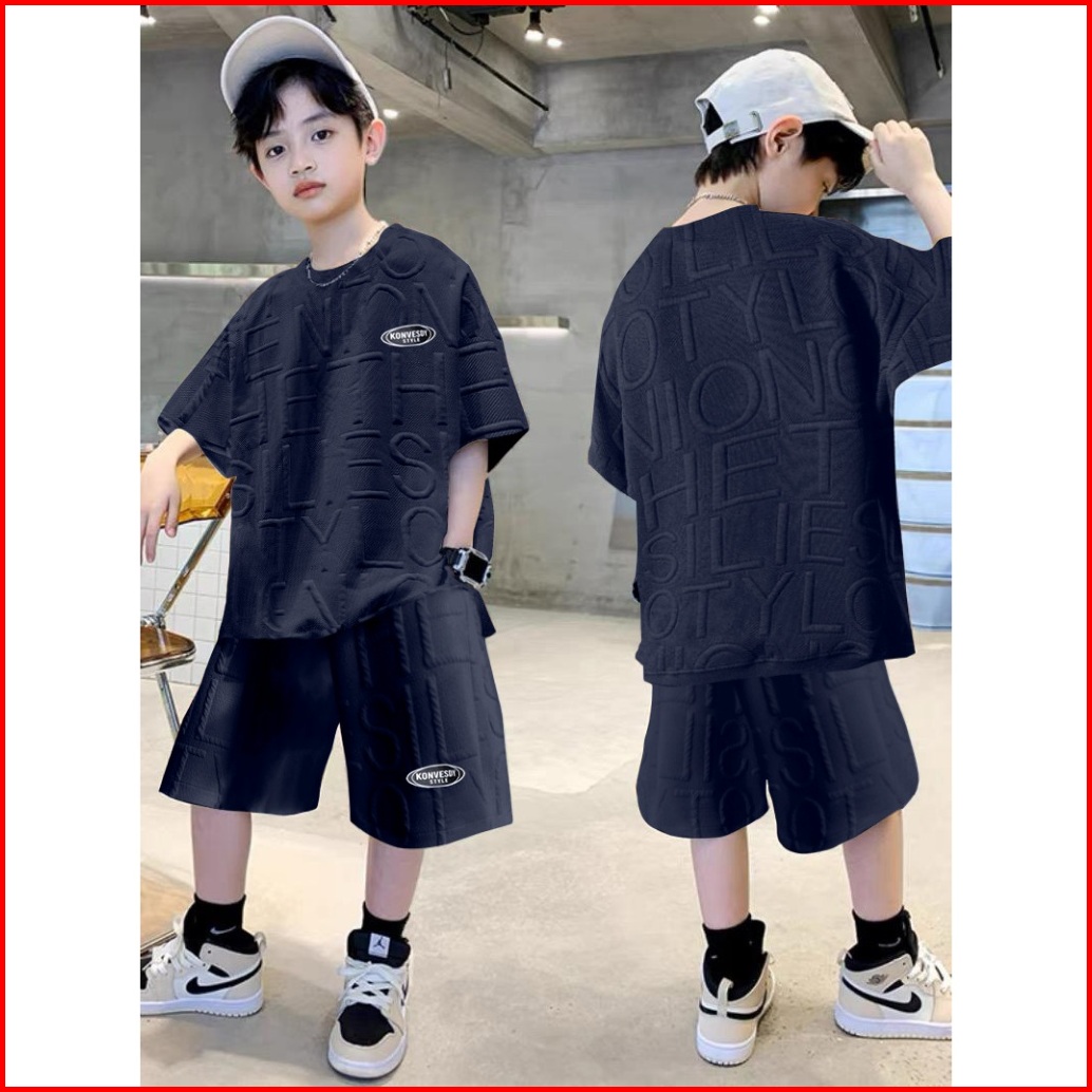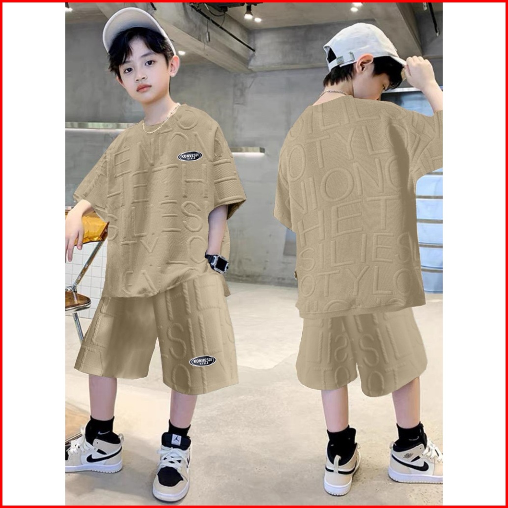 Amspro - Setelan Anak Embos Oversize Cowok-cewek Unisex Fashion Kids Premium Set Jojo