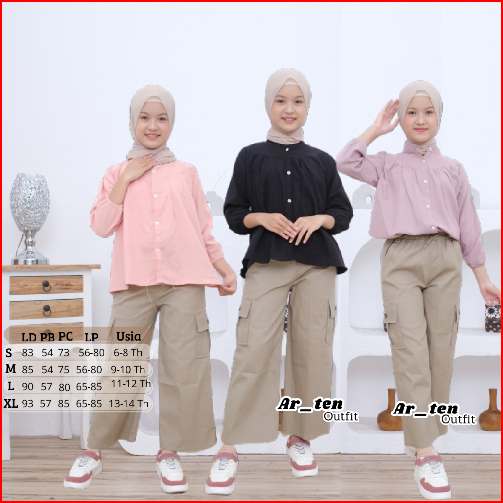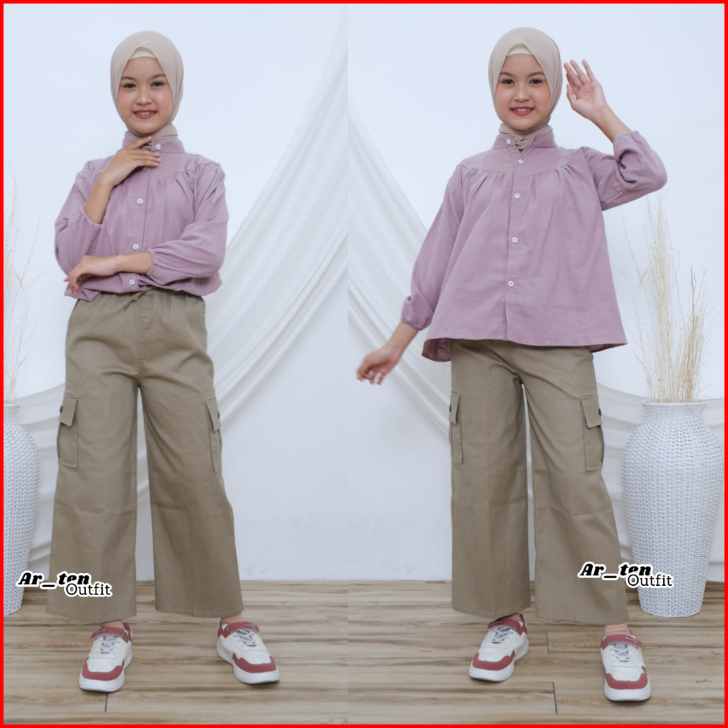 Setelan Celana Cargo Anak Perempuan Korean Style 6-14 Tahun