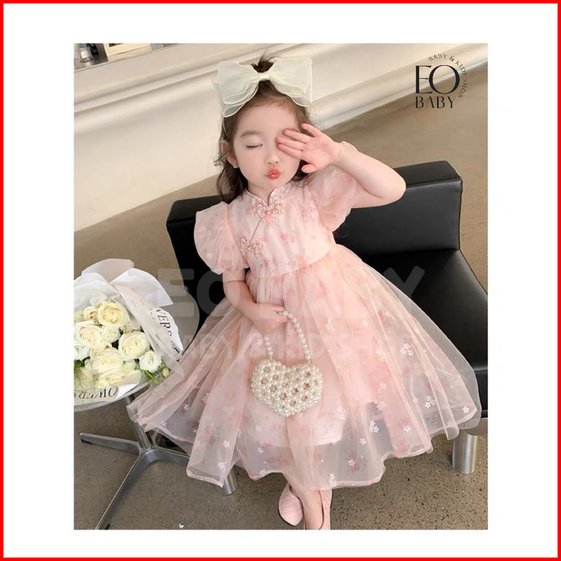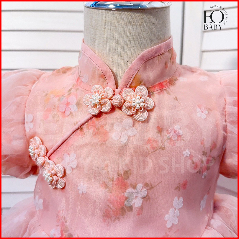 Eobaby L79 Dress Anak Perempuan Cheongsam Ngembang Pink Dress Anak Sincia Imlek Premium