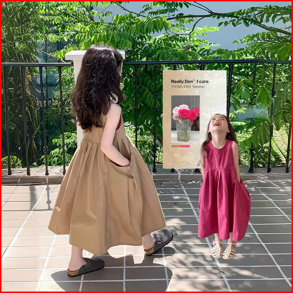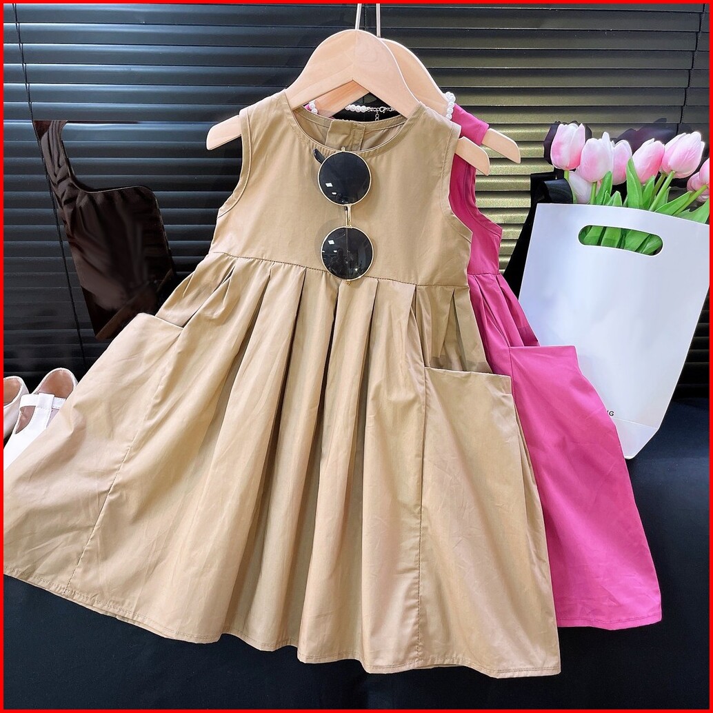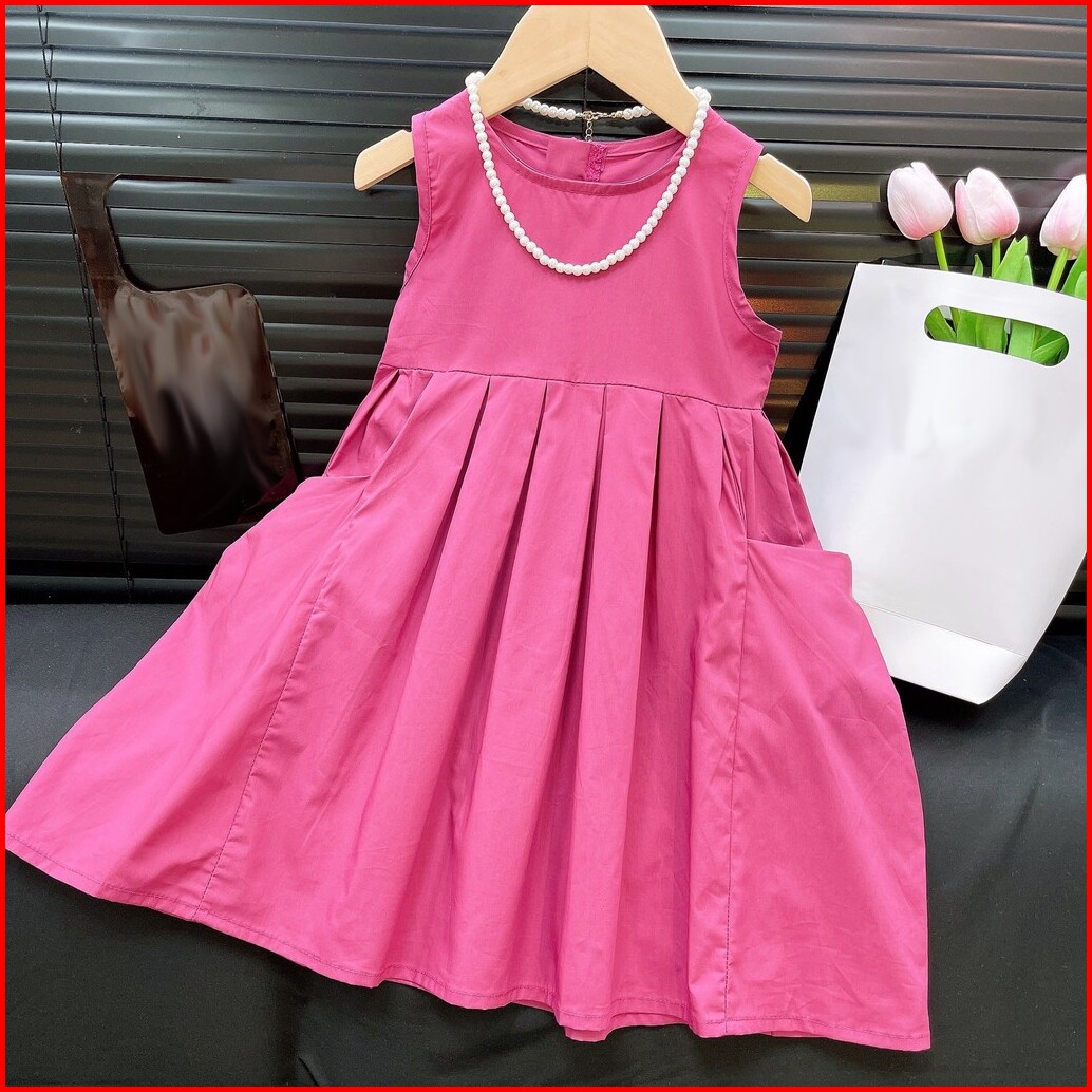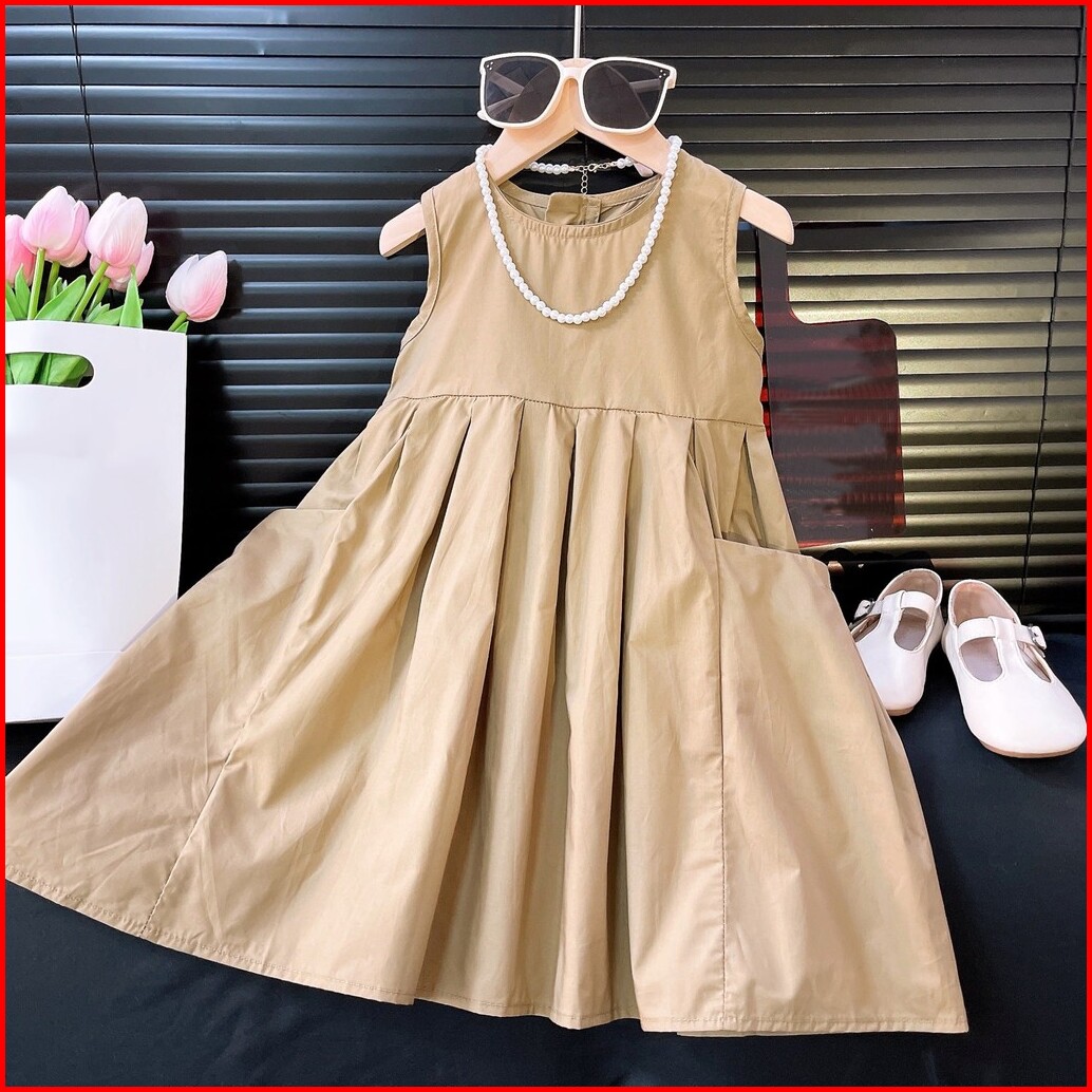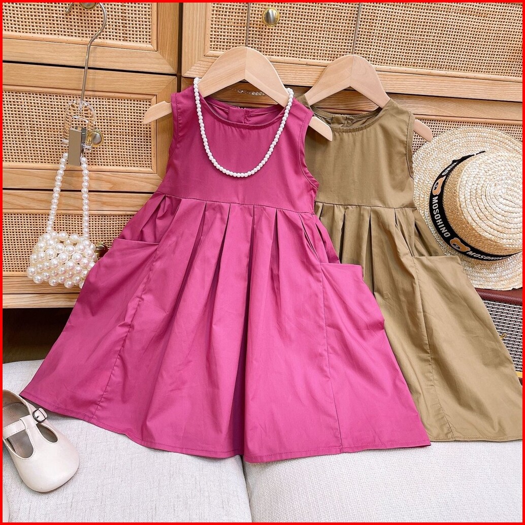 363803 - Baju Dress Tanpa Lengan Fashion Anak Perempuan - Motif Plain Casual