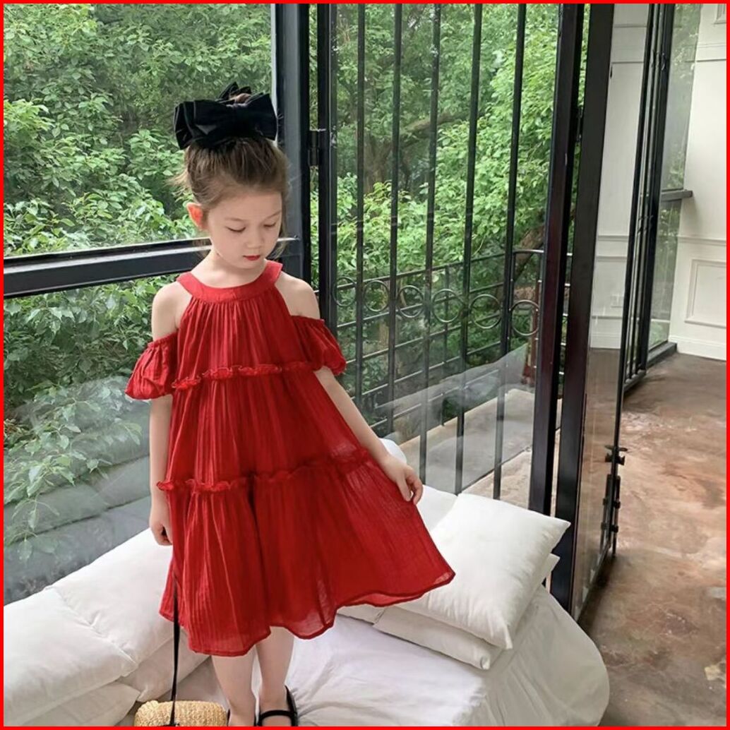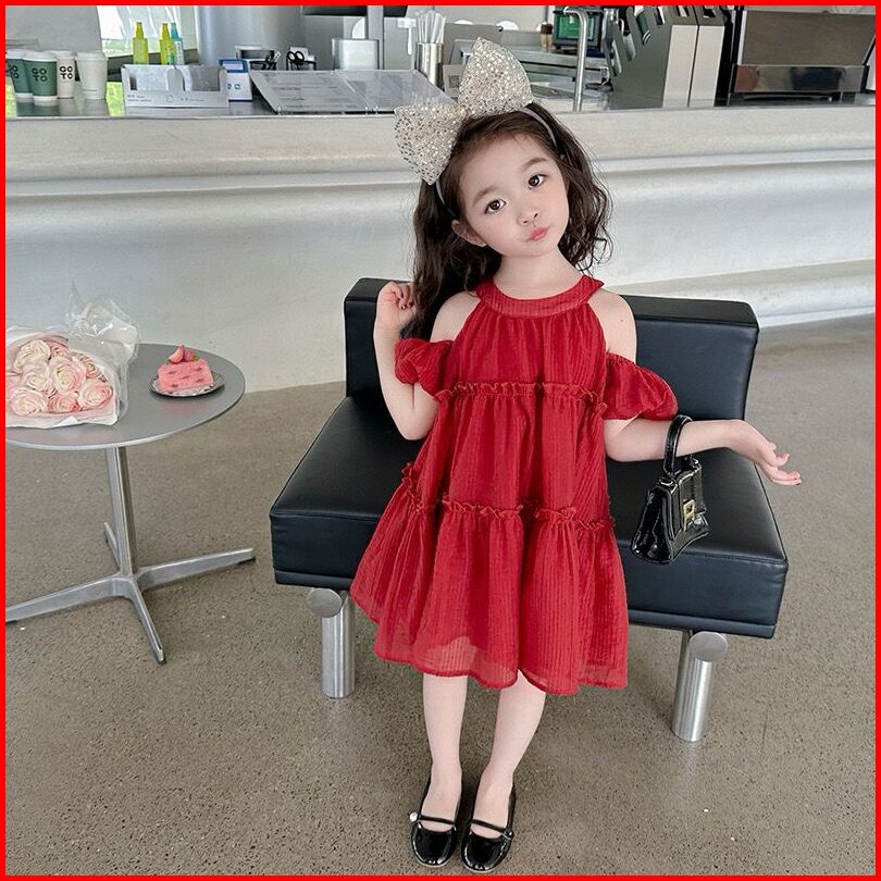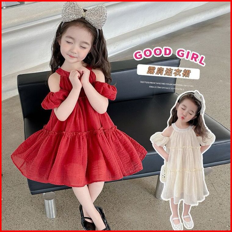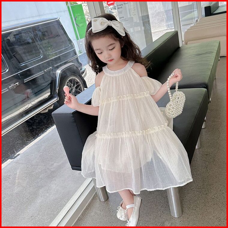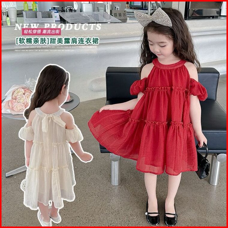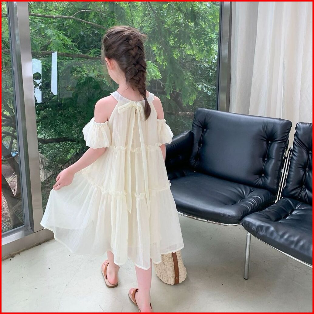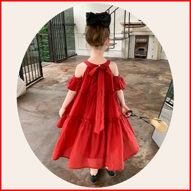 Kidsfashionkoleksi Dress Anak Perempuan Motif Halter Neck Bow Off Shoulder Korean Style