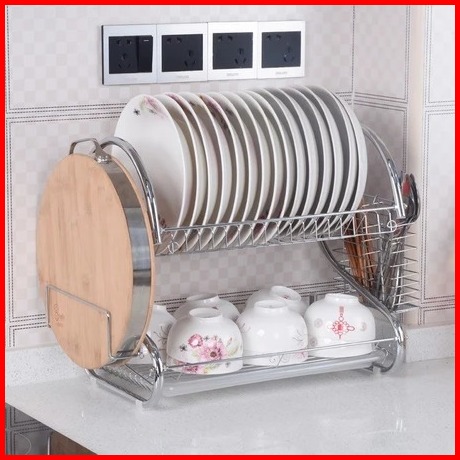 Rak Piring Dapur Stainless Steel Penyimpanan Rak Pengering Piring 2-3 Susun Rak Mangkuk Piring