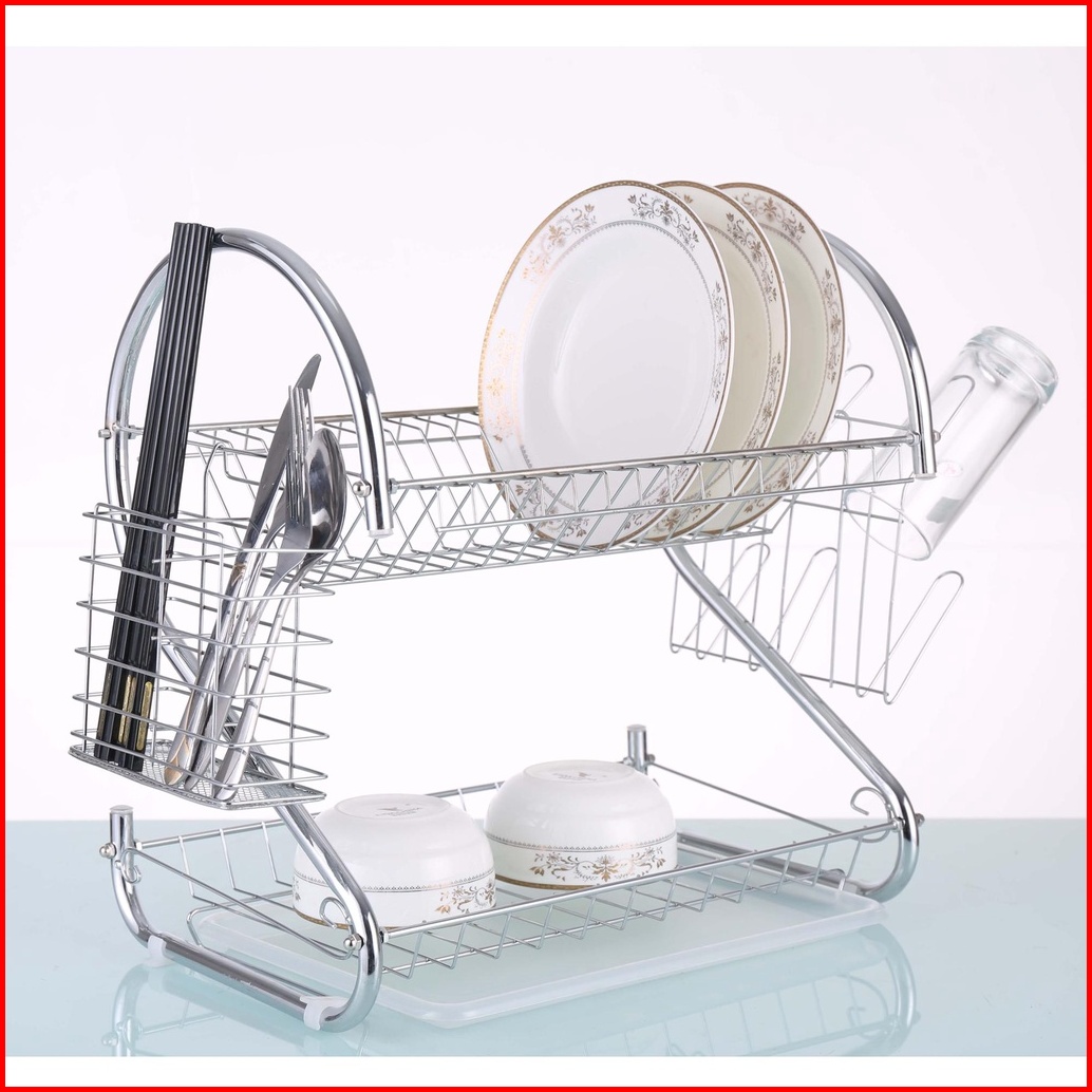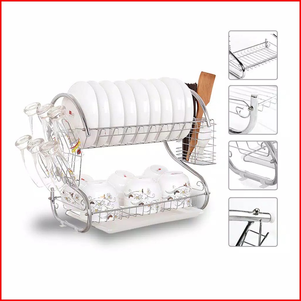 Rak Piring Stainless Untuk Dapur Minimalis 2 Susun Peralatan Dapur Serbaguna 2 Tier Dish Drainer