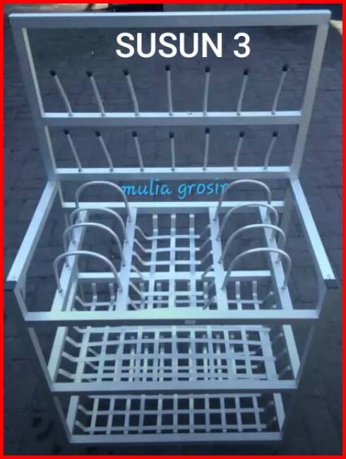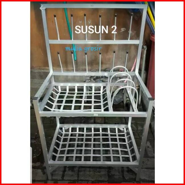 Rak Piring Aluminium Susun 2 Kira 65x40x100cm Susun 3 Kira 70x40x120cm