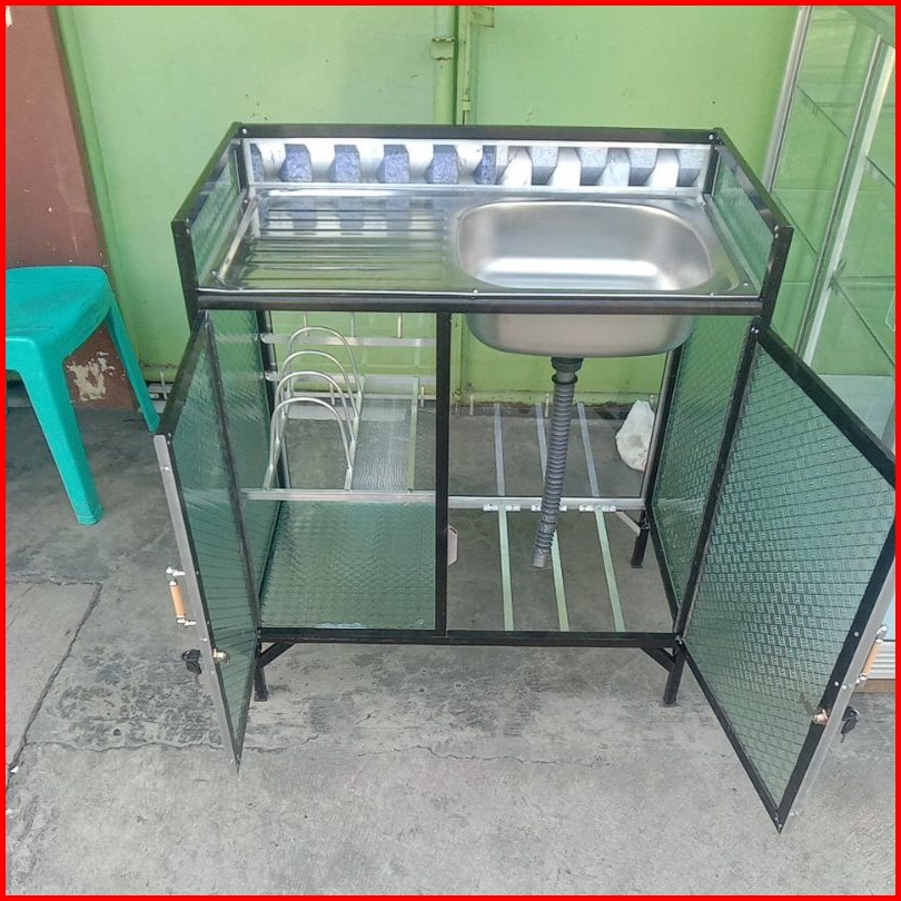 Lemari Kaca Tempat Cuci Piring Wastafel