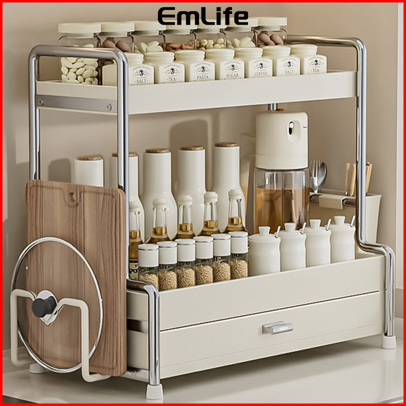 Rak Dapur Rak Garam Rak Bumbu Toples Bumbu Kotak Penyimpanan Bumbu Multi Fungsi Rak Bumbu Dengan Laci