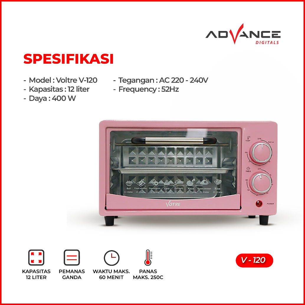 Advance Oven Listrik Advance V-120 400w Low Watt Electric Oven Garansi 1 Tahun