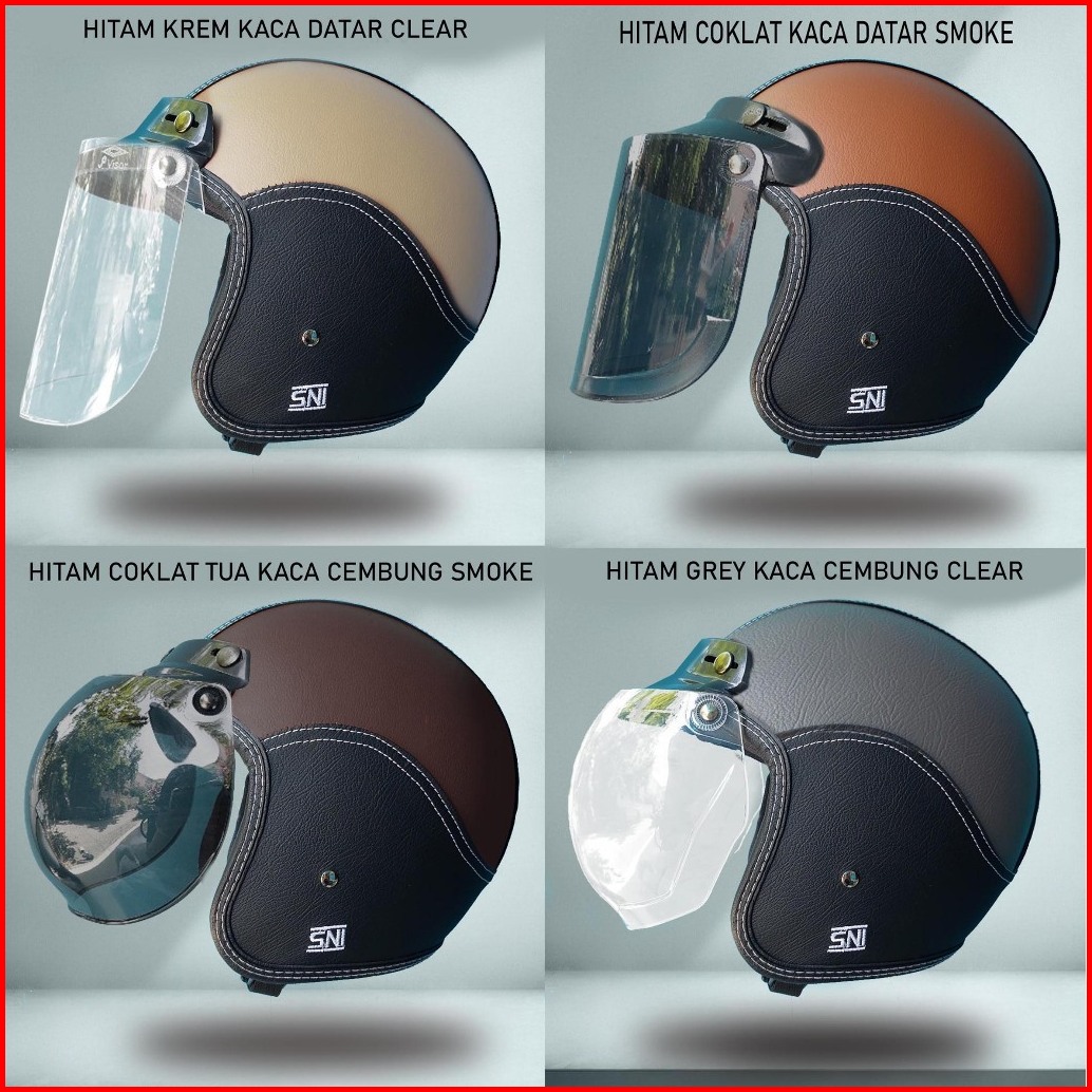 Helm Bogo Retro Full Leher Dewasa Premium Sni Bogo Kulit