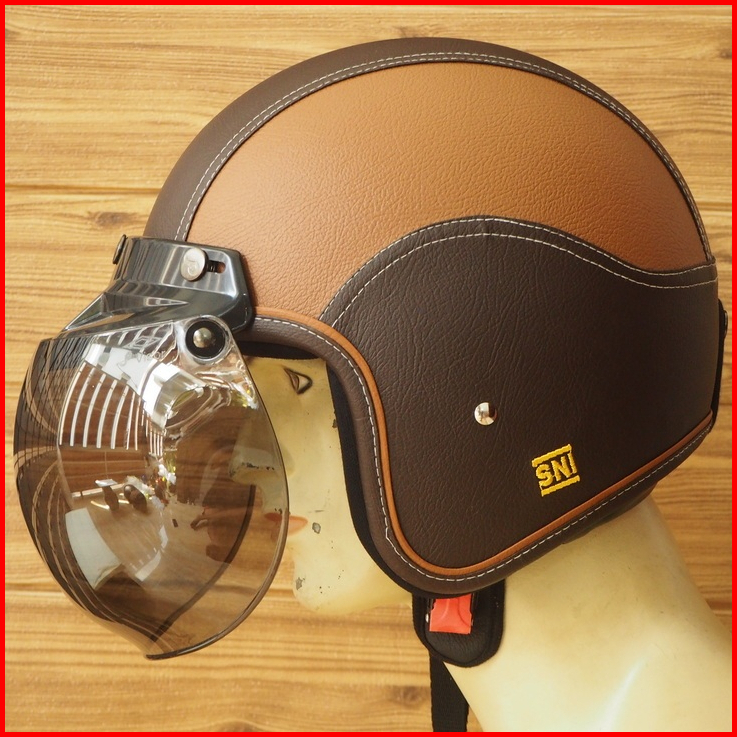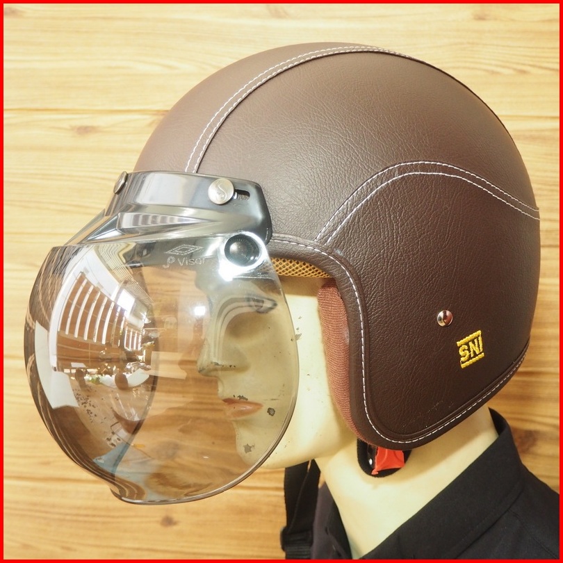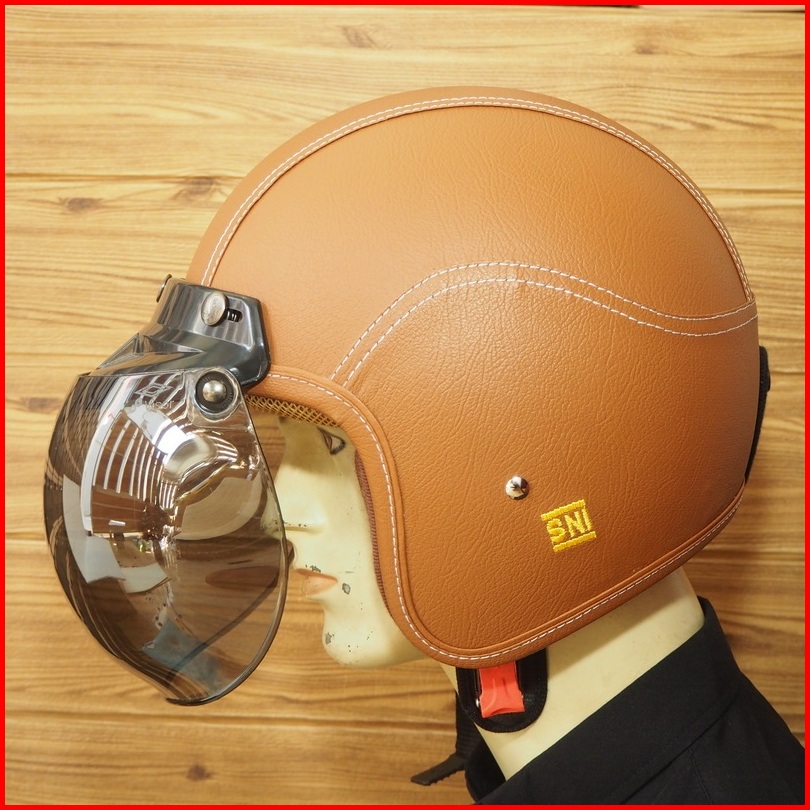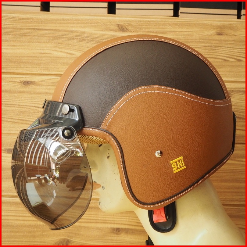 Bogo Helm Retro Classic Kulit Sintetis Sni Dewasa Pria Wanita Helmet Boggo Retro Klasik Glossy Dove Ready Stok Warna Ful