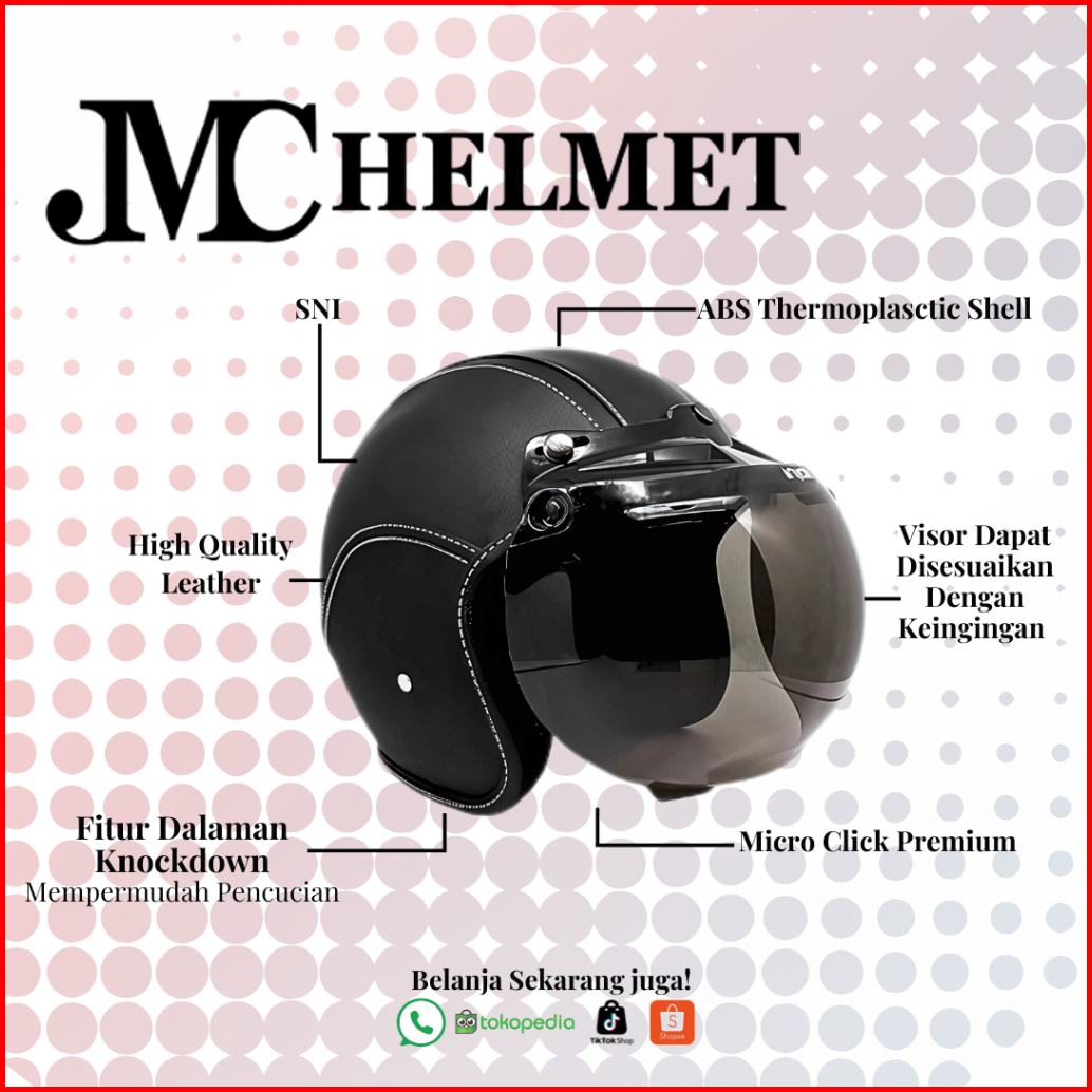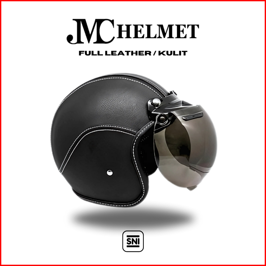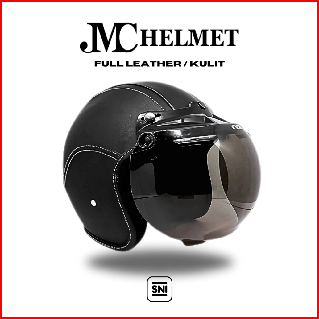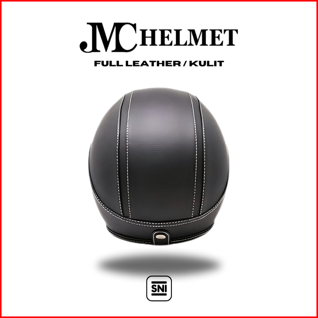 Helm Bogo Retro Klasik Dewasa Sni Full Leather Hitam - Kaca Polos Biasa
