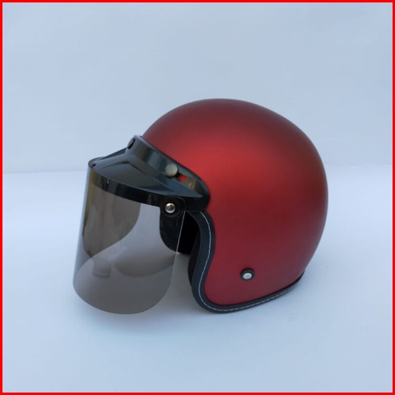Helm Bogo Retro Vespa Polos Kaca Datar Cembung Dewasa Termurah Sni Half Face