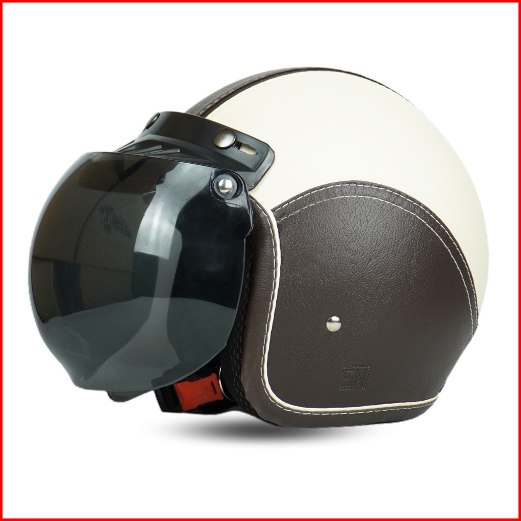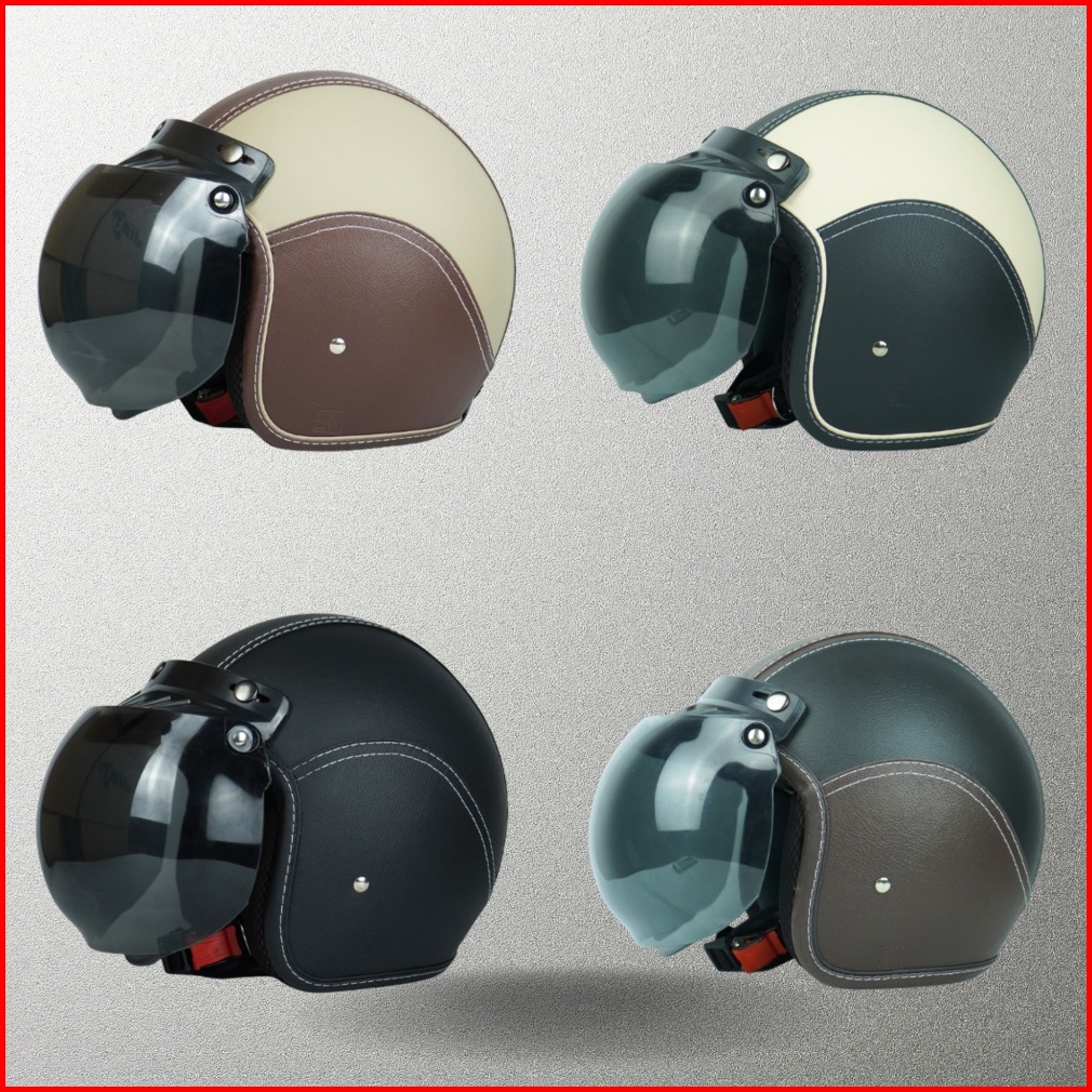 Helm Bogo Dewasa Kulit Motor Sni Pria Wanita Cowok Cewek Helem Retro Bagus