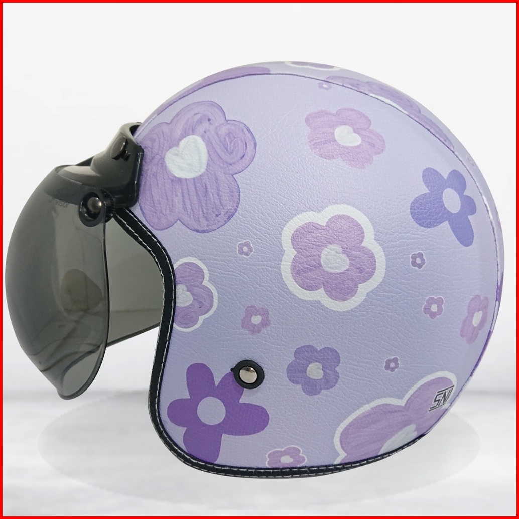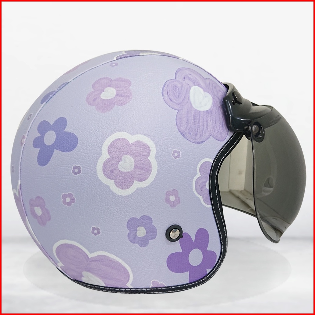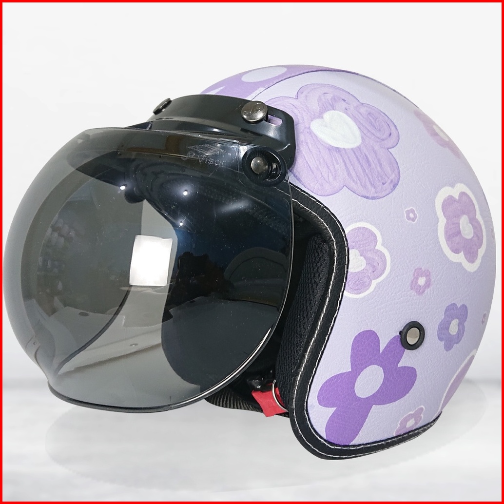 Helm Bogo Retro Kulit Bunga Ungu Free Tambah Nama Request Warna Sni Helm Dewasa Anak Premium