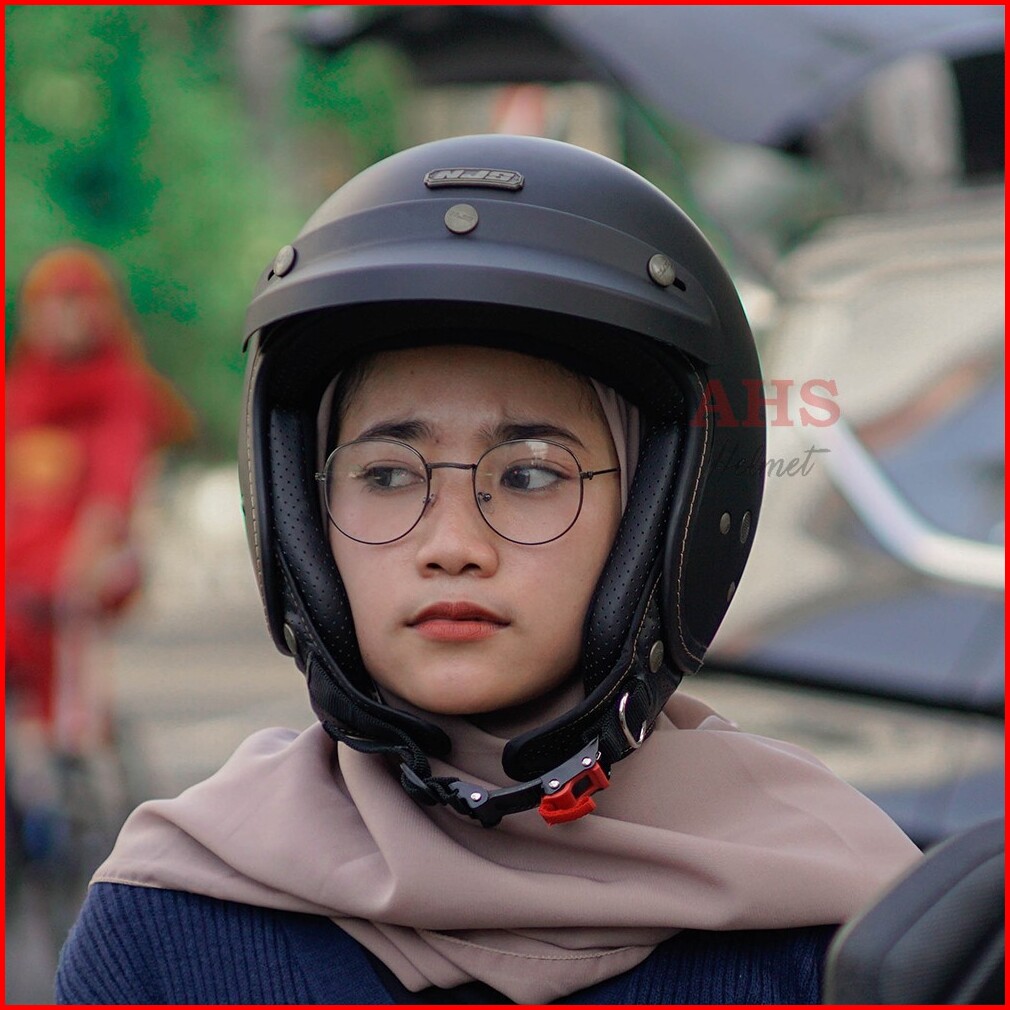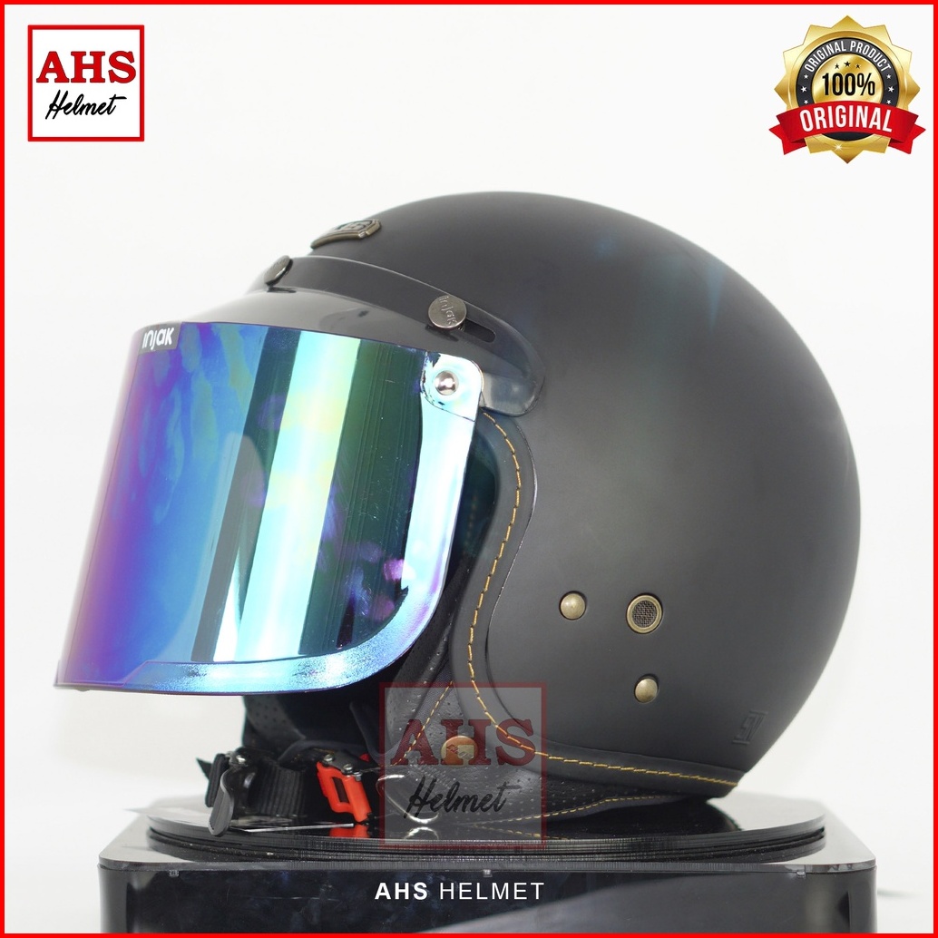Helm Bogo Retro Njs Nr-80s Solid Premium Full Leher Free Pet Standart Sni