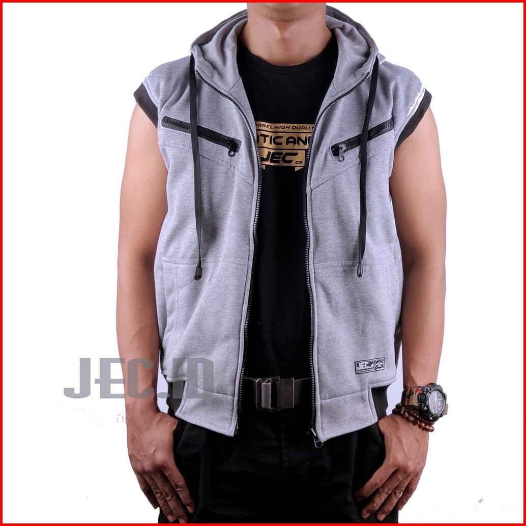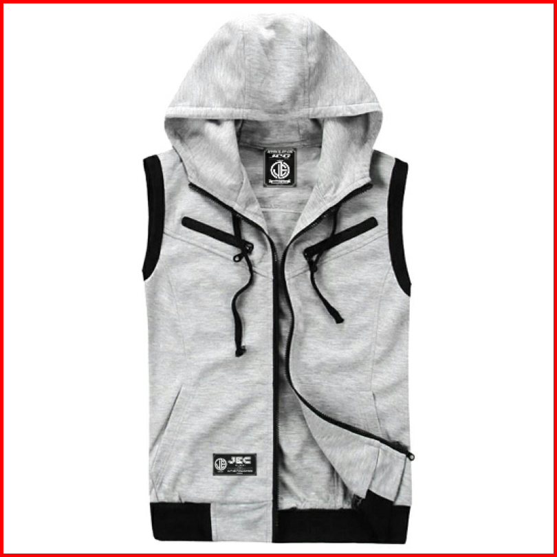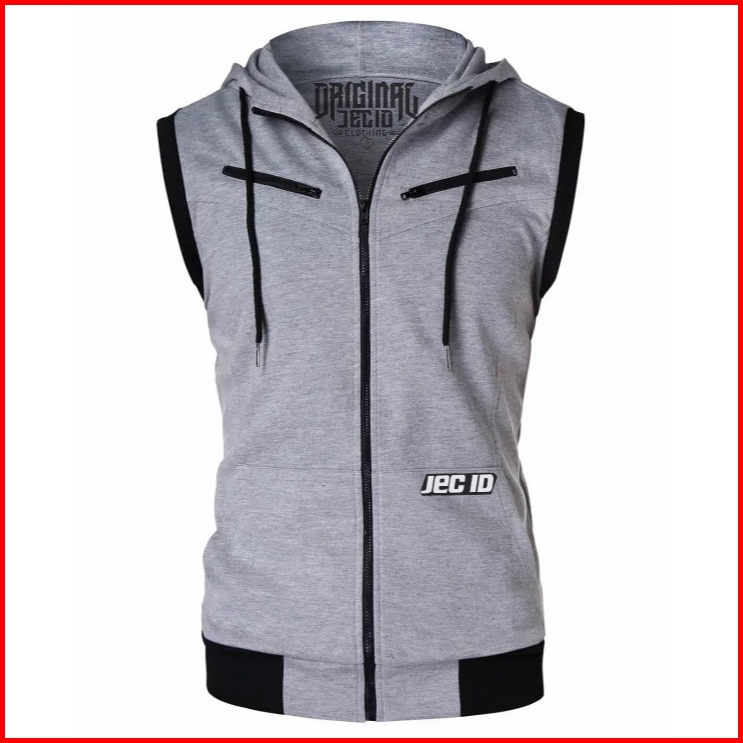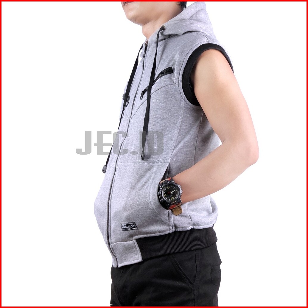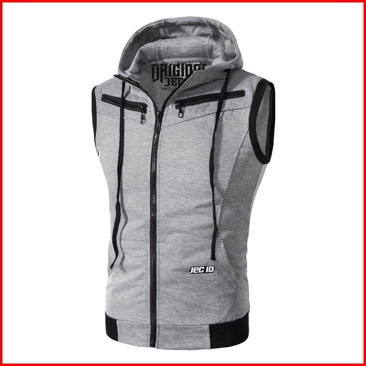 Jec Rompi Hoodie Pocket Zipper Abu Misty Sporty Full Premium Tanpa Lengan