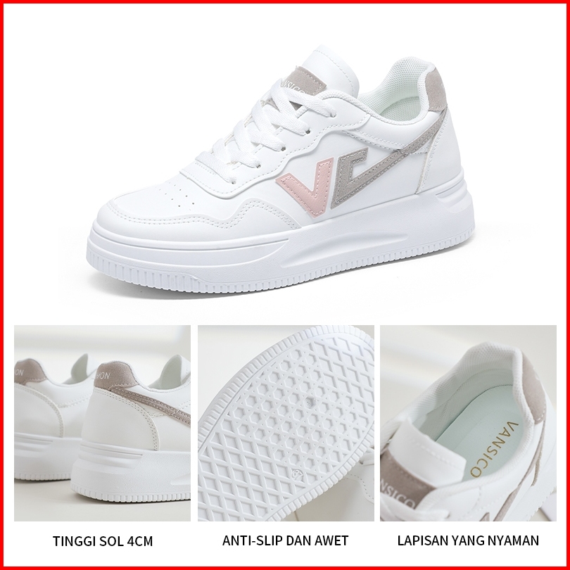 Vansico Sepatu Sneakers Putih Wanita Original 100 Olahraga Premium Kekinian Casual Sport Shoes Kets Cewek Simple Import