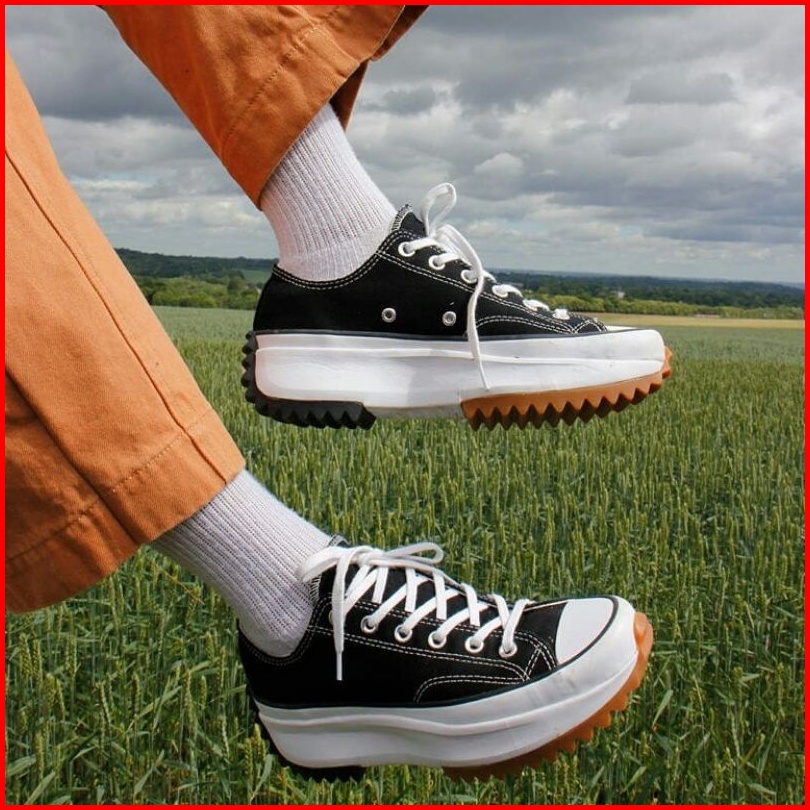 Converse Run Star Hike Hitam Putih Pendek Sneakers Wanita Premium Bnib Hak Tinggi Untuk Cewek