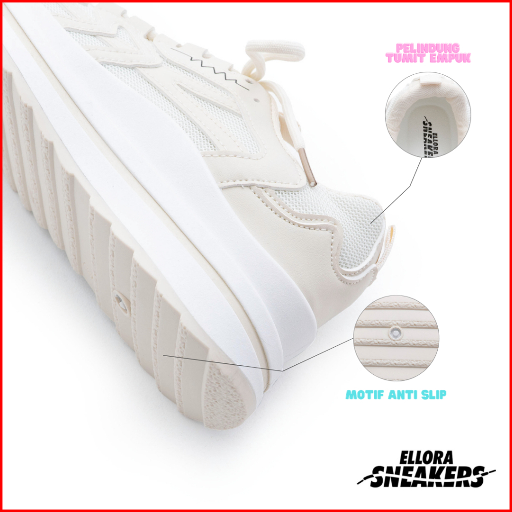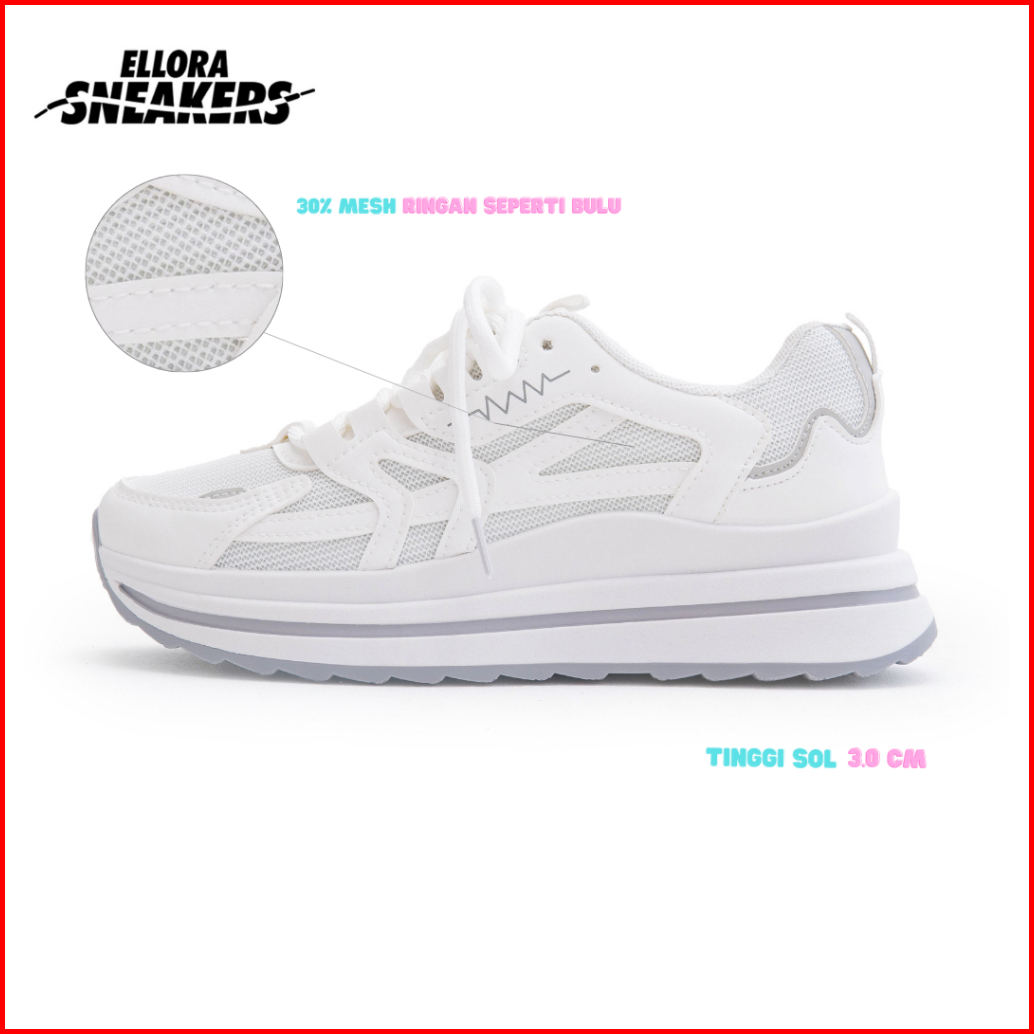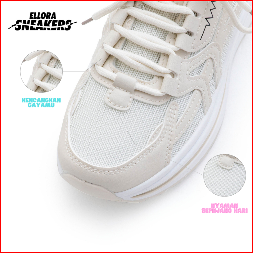 Ellora Carin Sneakers Wanita 36-40 Sepatu Sport Casual Anti Slip Bagus Keren Kece Elegant Bahan Pu