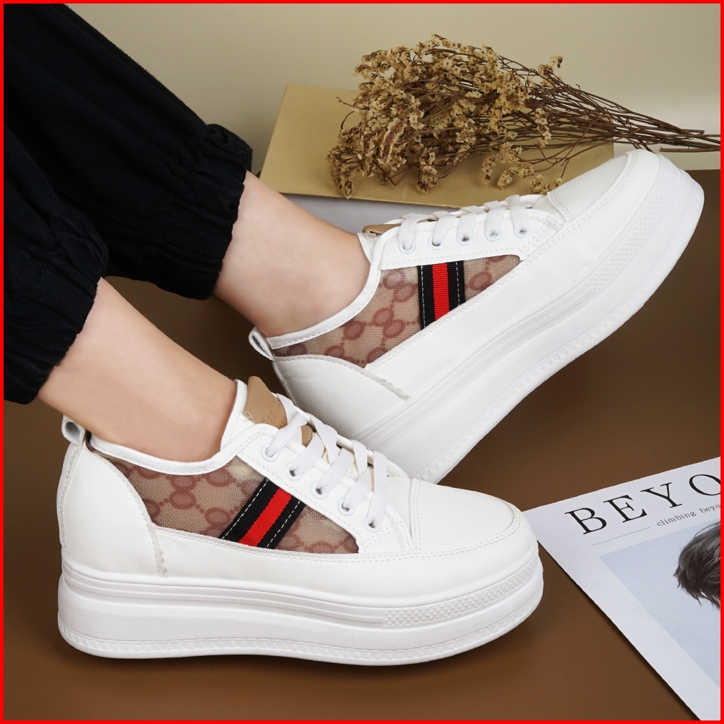Sepatu Tinggi Wanita Sneakers Jalan Santai Sepatu Sneaker Cewek Motif Terbaru Shoes Korea Sp-153