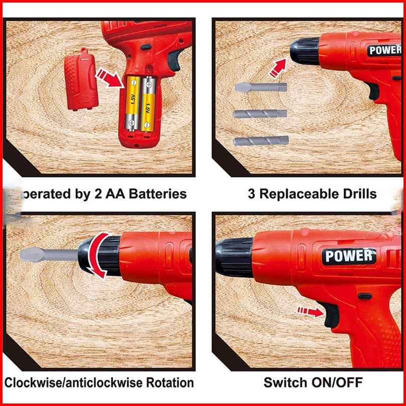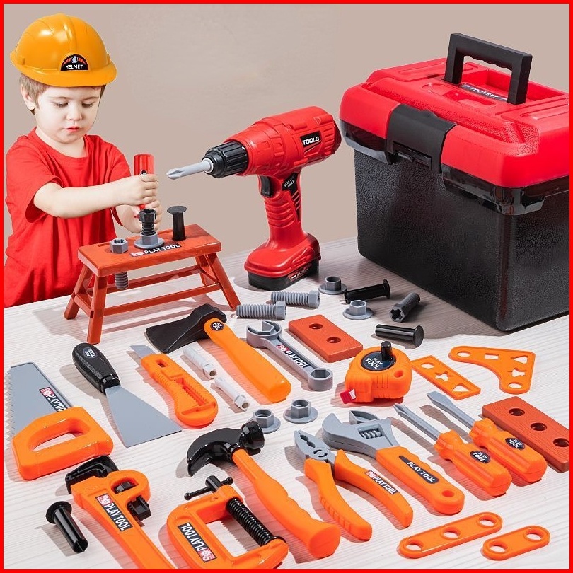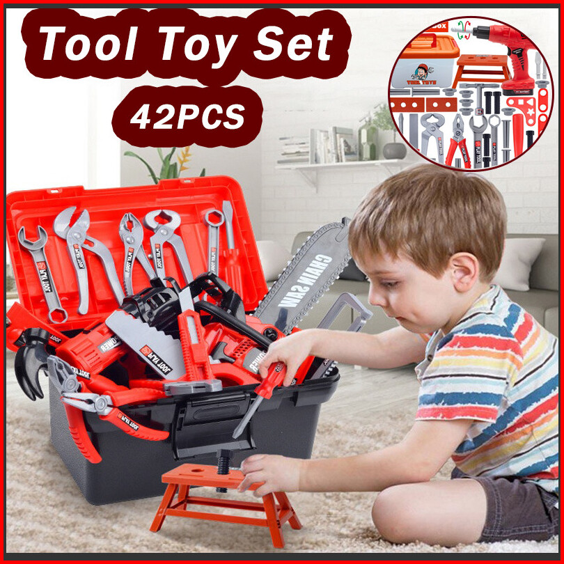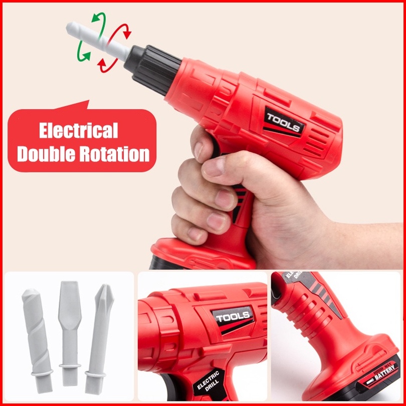 42 Pcs Mainan Toolbox Kit Simulation Bor Listrik Kit Mainan Tool Box Kit Pendidikan Anak Laki-laki Alat Set Simulasi Ele