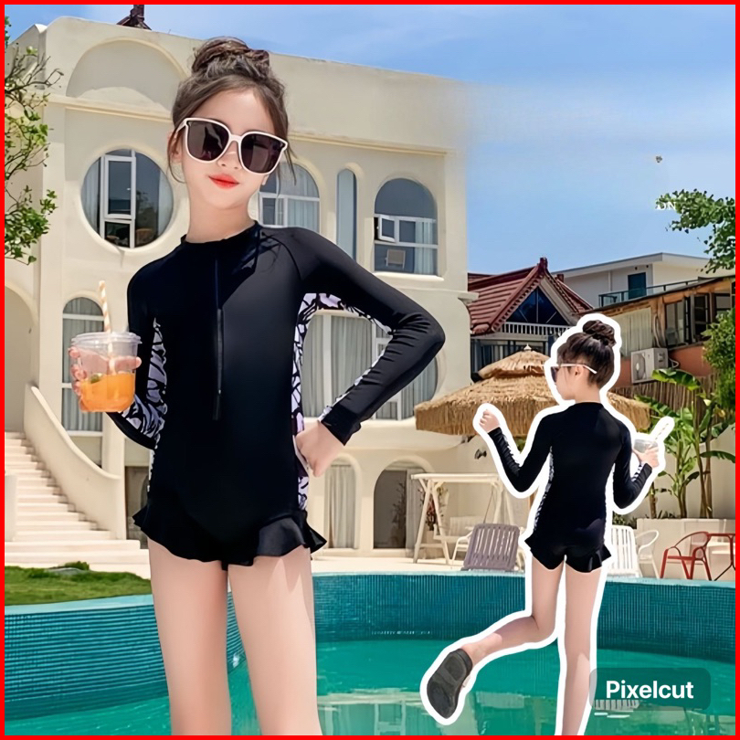 Br156 Pakaian Renang Anak Perempuan Lengan Panjang Baju Renang Anak