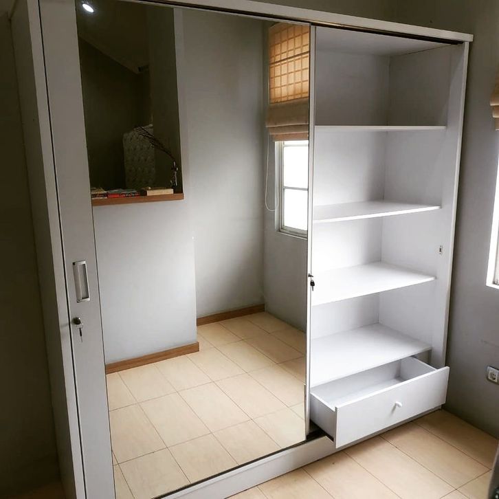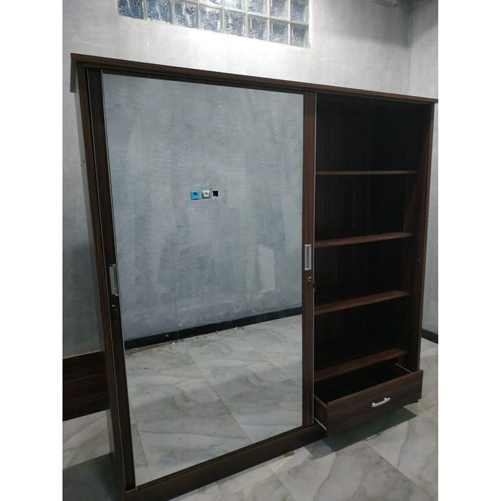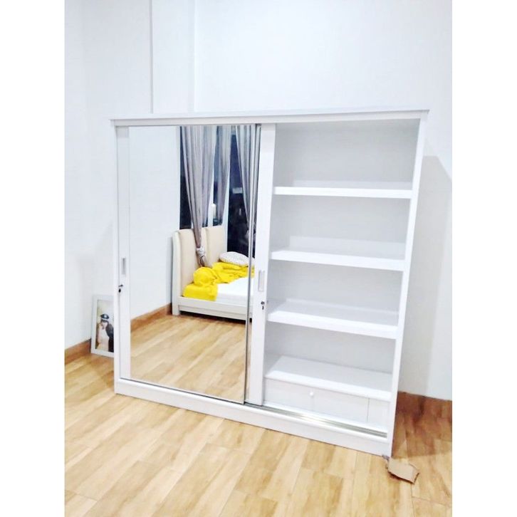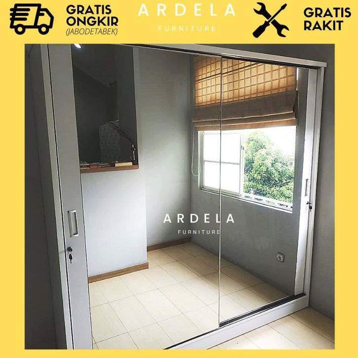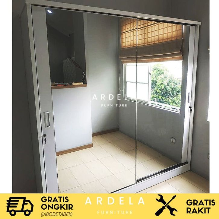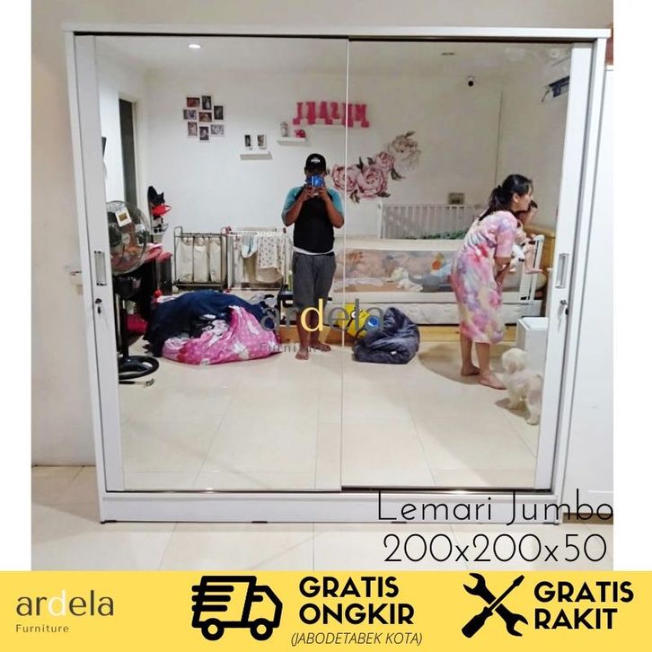 Lemari Pakaian Jumbo Pintu Sliding Dengan Cermin Besar Kesan Ruangan Luas Model Modern Minimalis Bahan Kuat dan Awet