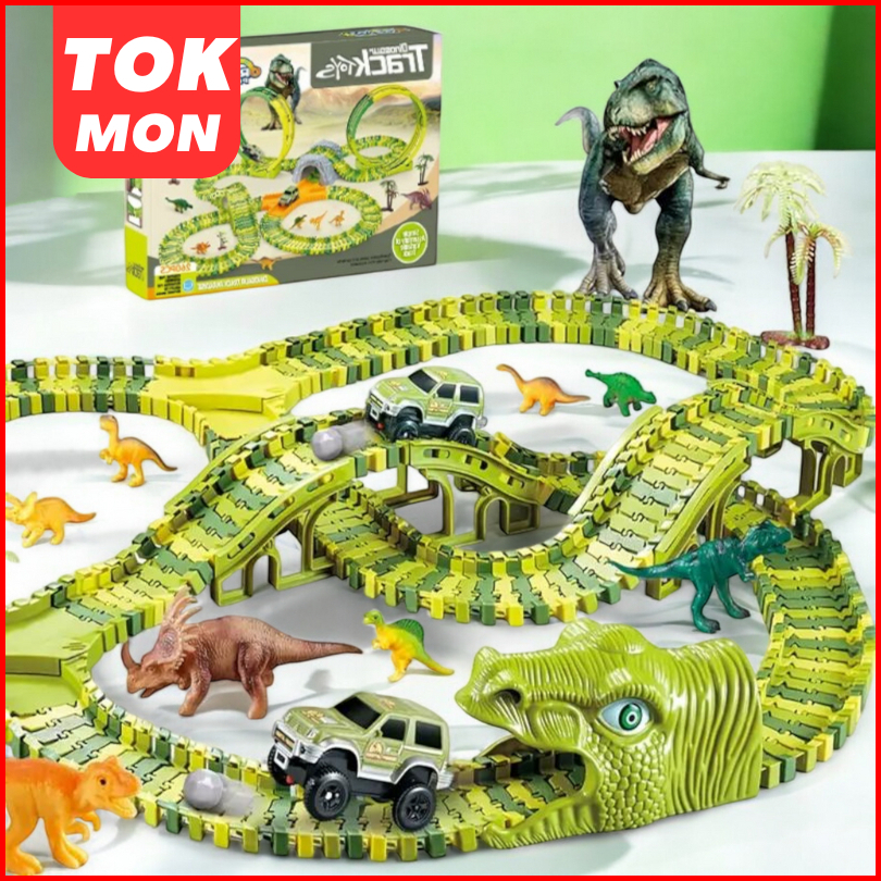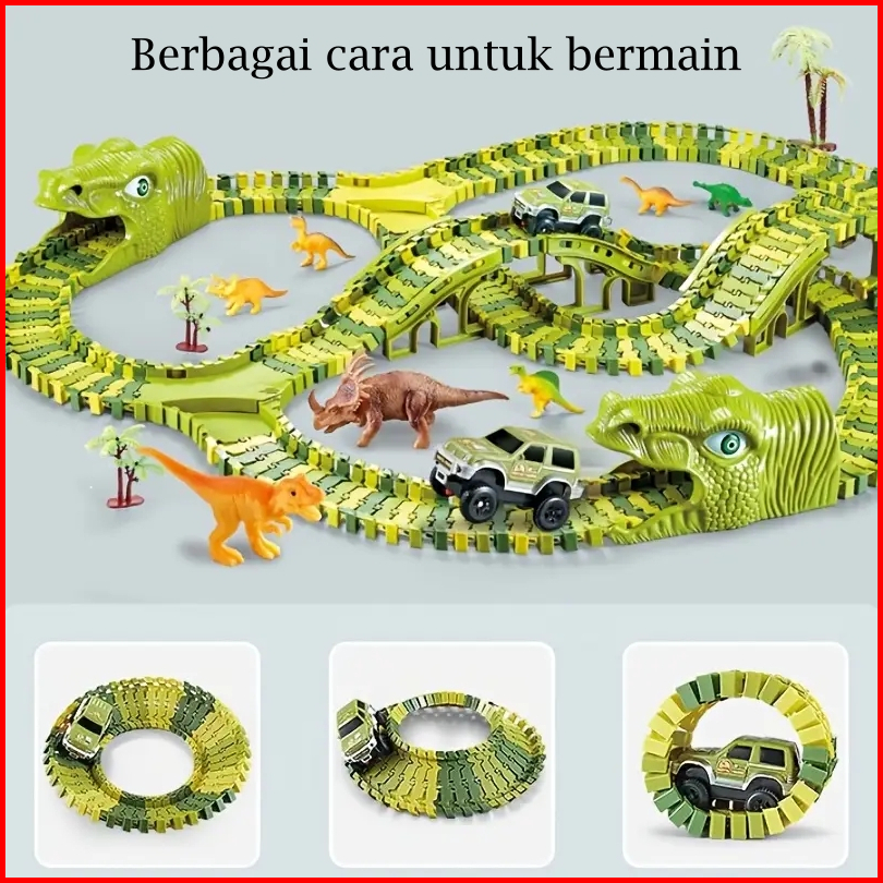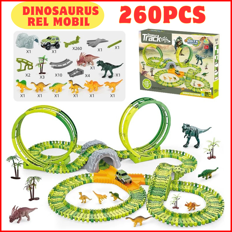 Dinosaurus Rel Mobil Mainan 120 168 240 260pcs Track Diy Rel Mobil Mainan Edukatif Dengan Trek