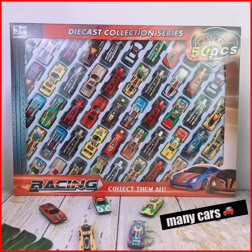 50pcs Mainan Anak Mobil Mini Colorful Racing Set Logam Yang Tahan Terhadap Jatuh