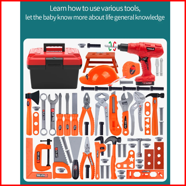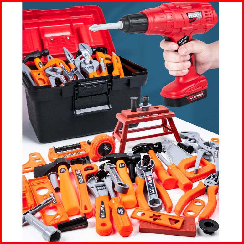 68pcs Mainan Set Kotak Alat Anak Kotak Alat Simulasi Mainan Rumah Bermain Obeng Bor Listrik Anak-anak Sekrup Dan Mur Lis