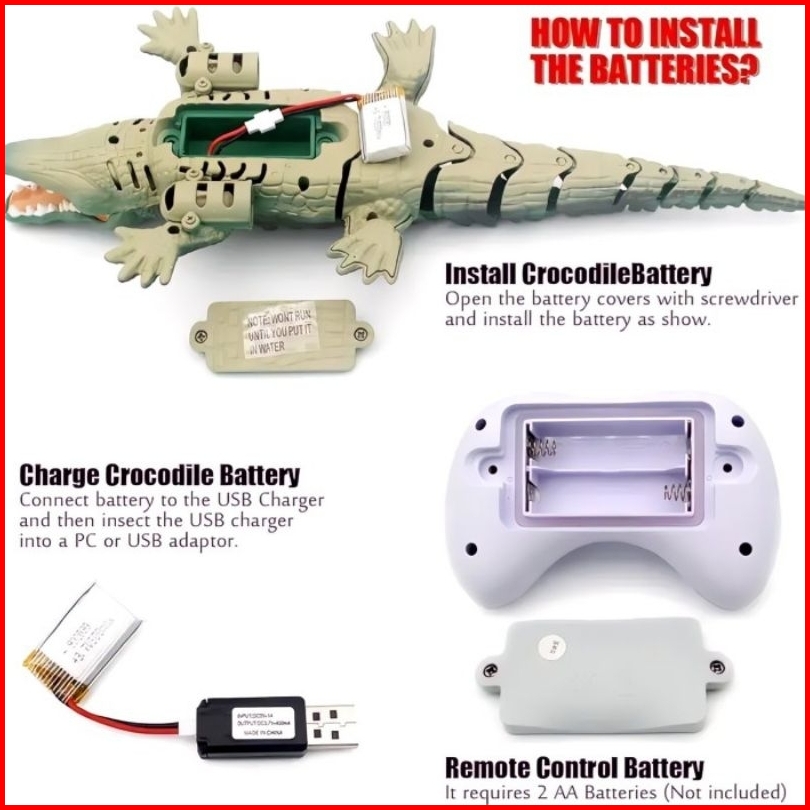 Rc Crocodile Remote Control 2.4ghz Baterai Cas Berenang Di Air - Mainan Buaya Remot Kontrol Crocodille Murah Swimming Bo