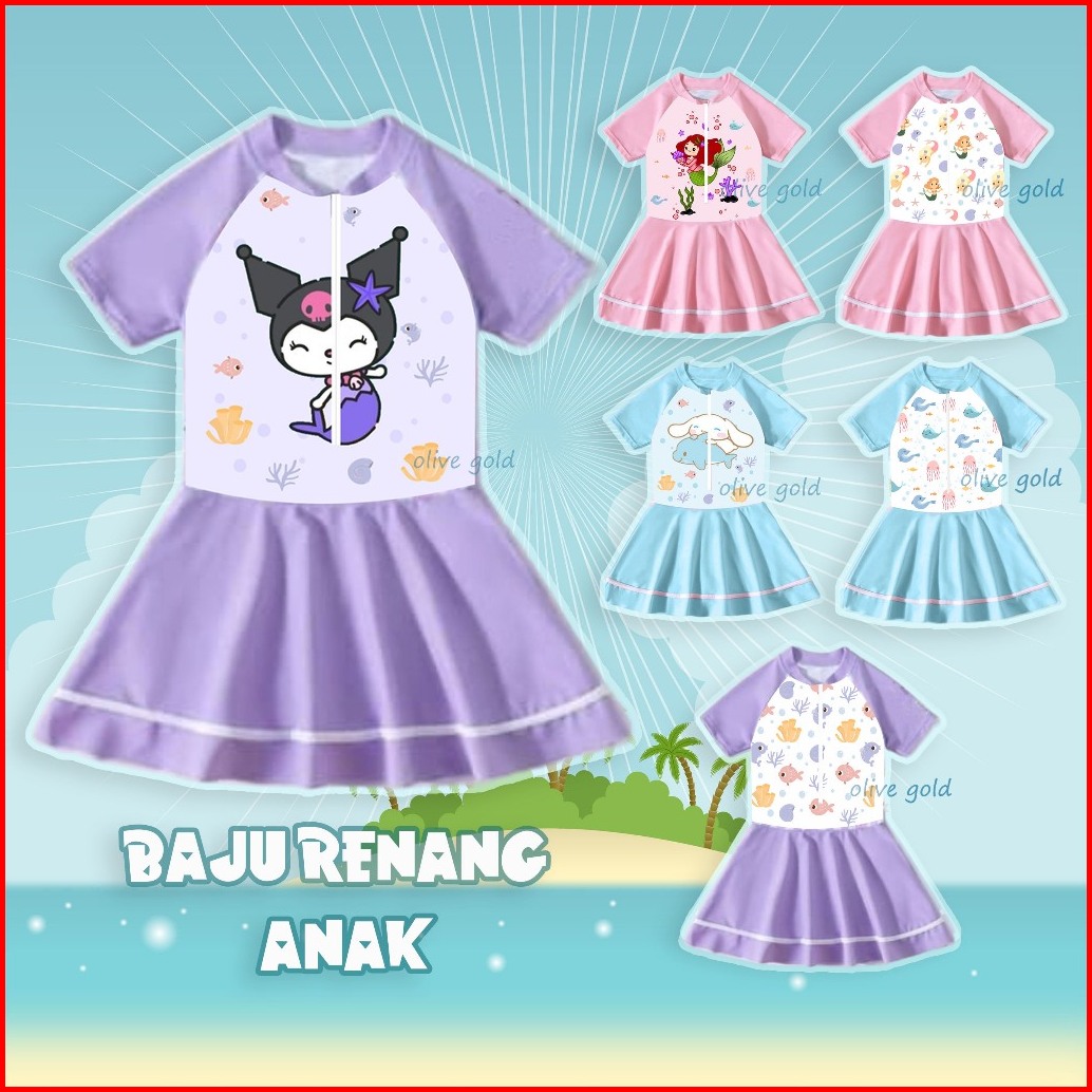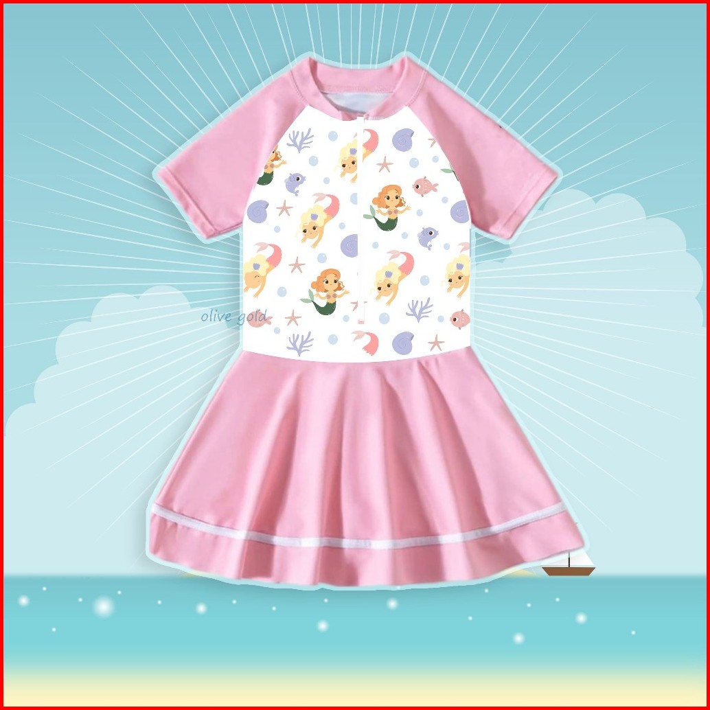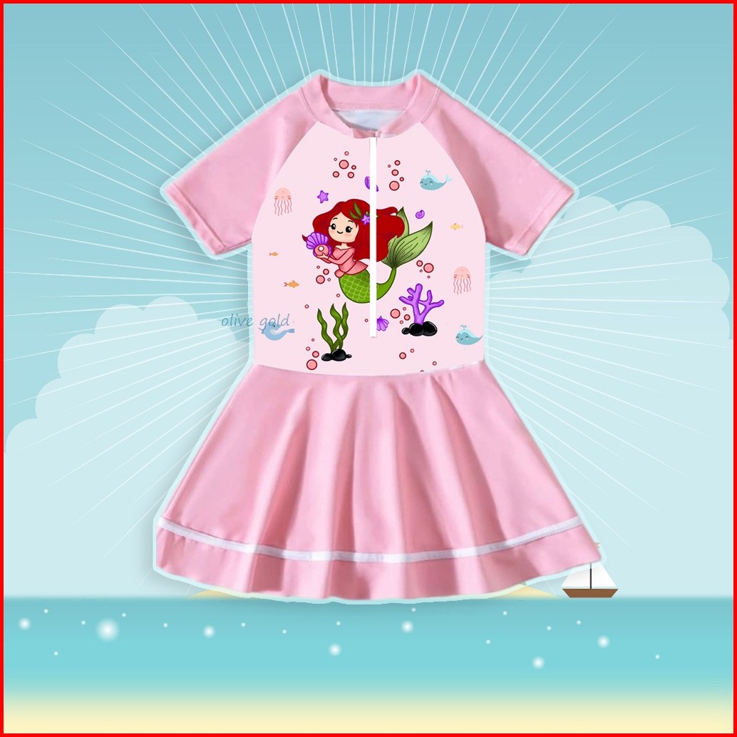 Olive Baju Renang Anak Perempuan Karakter Rok Short Spandek Premium