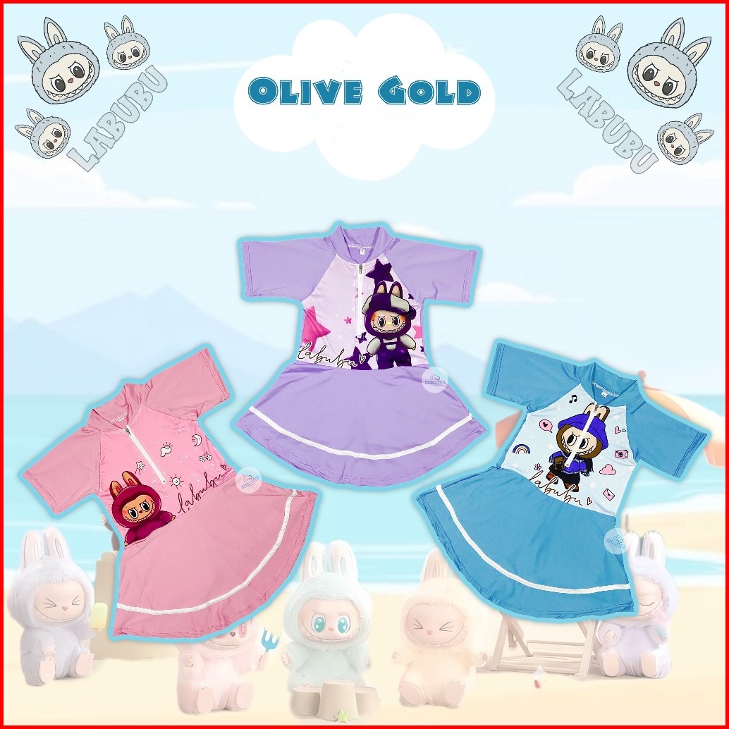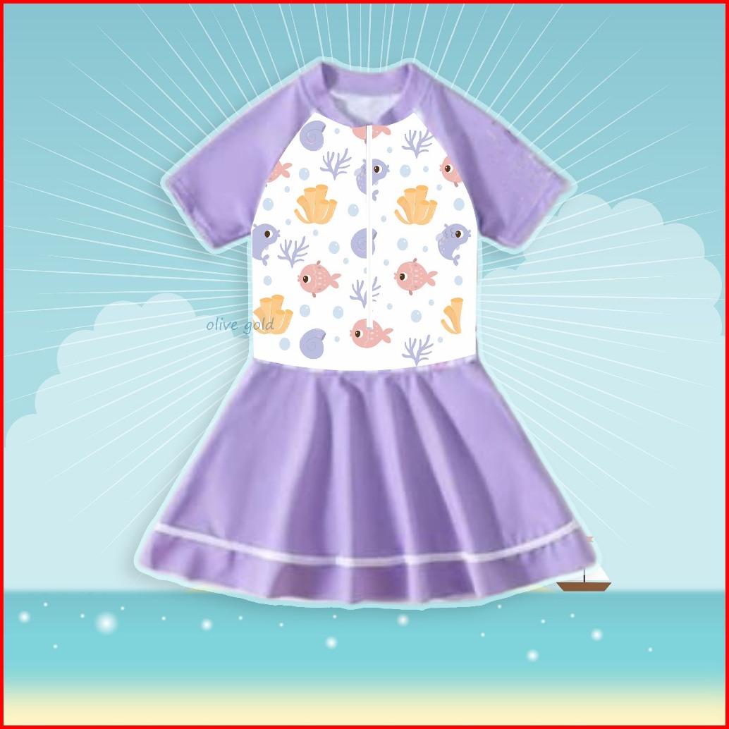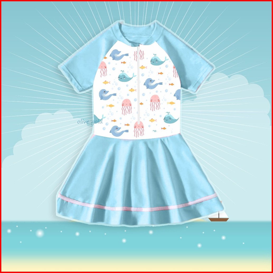 Olive Baju Renang Anak Perempuan Karakter Rok Short Spandek Premium