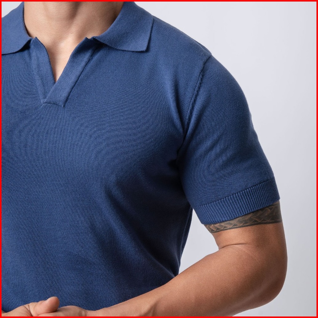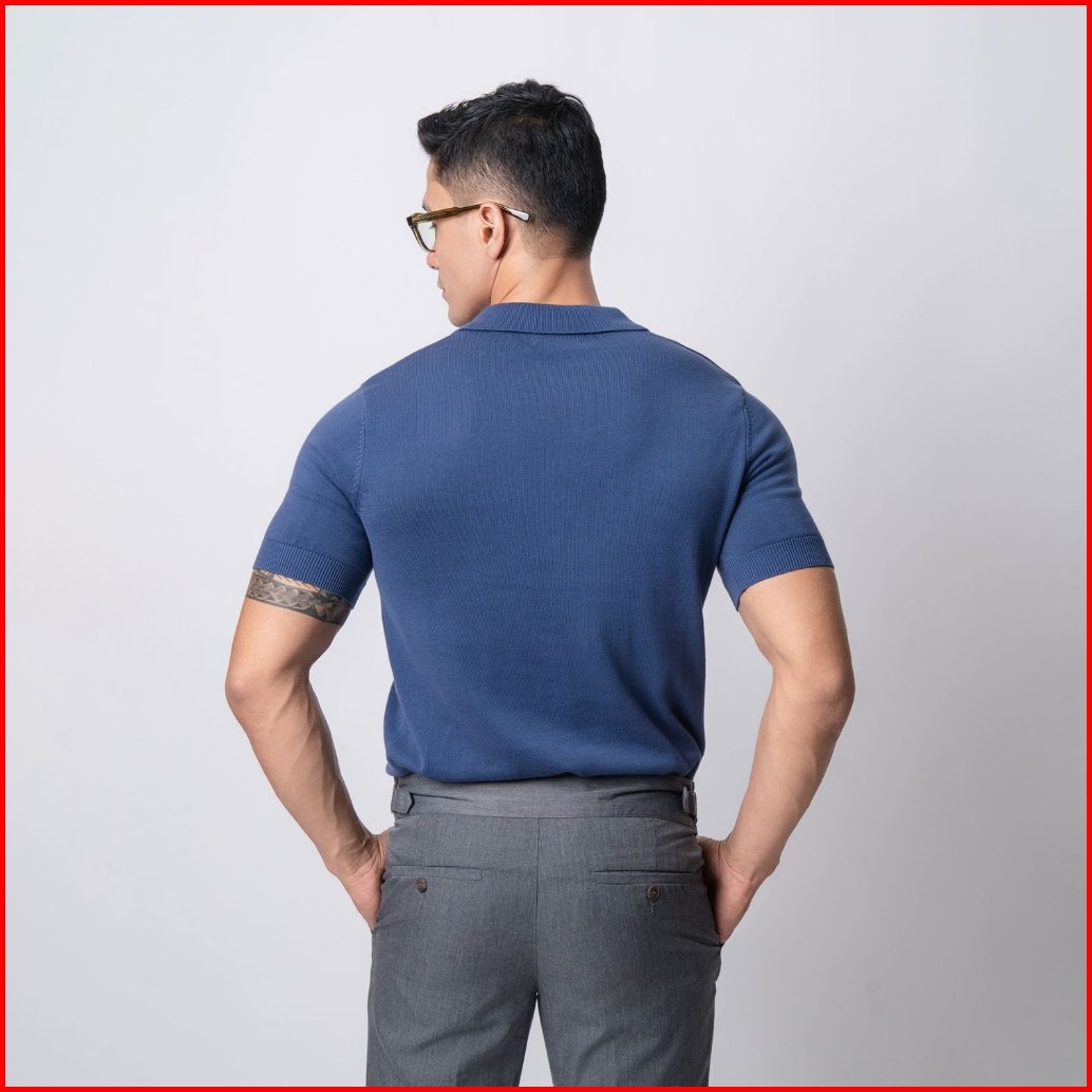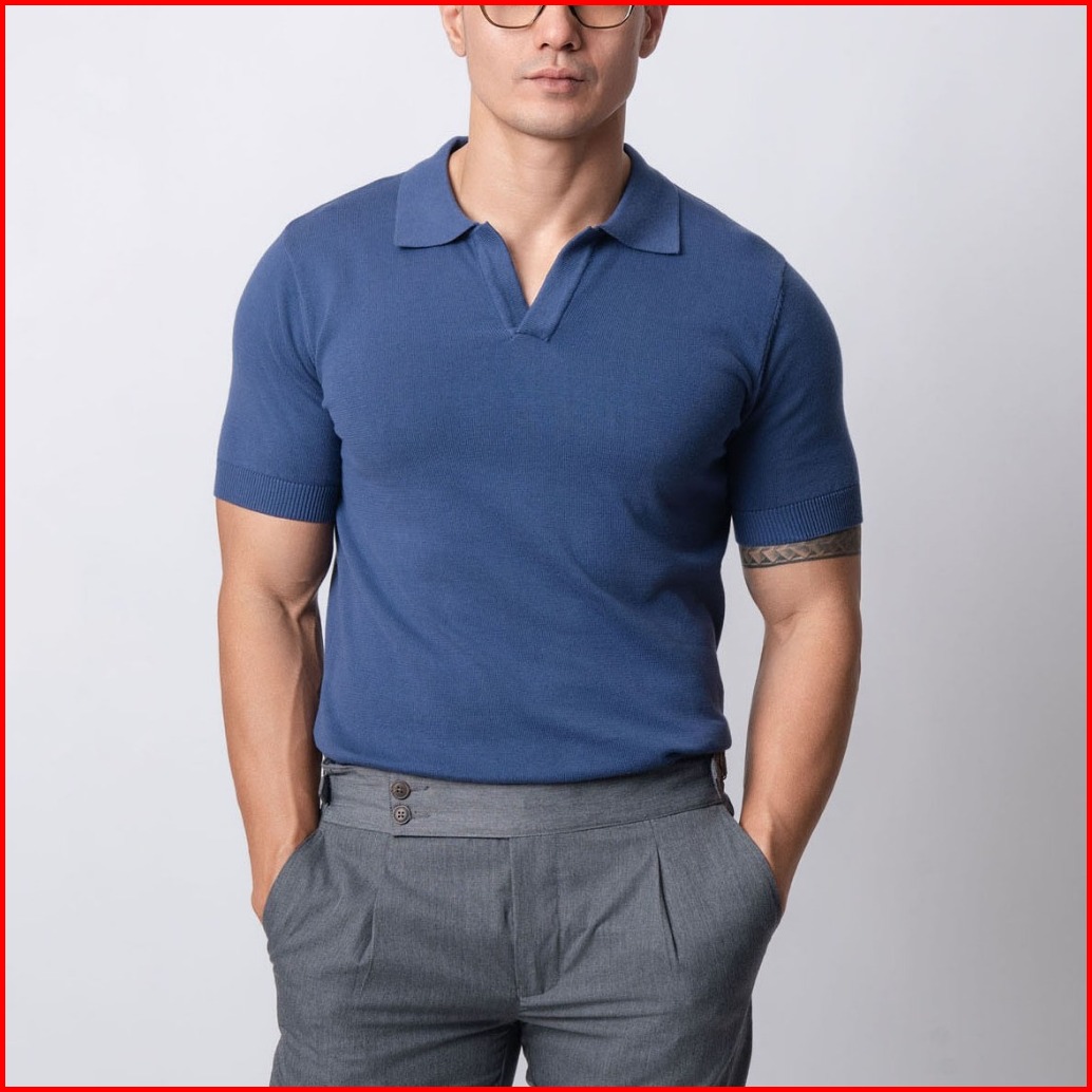 Vengoz Polo Shirt Rajut Pria - Mens Polo Shirts Basic Vneck Knitted Denim Blue