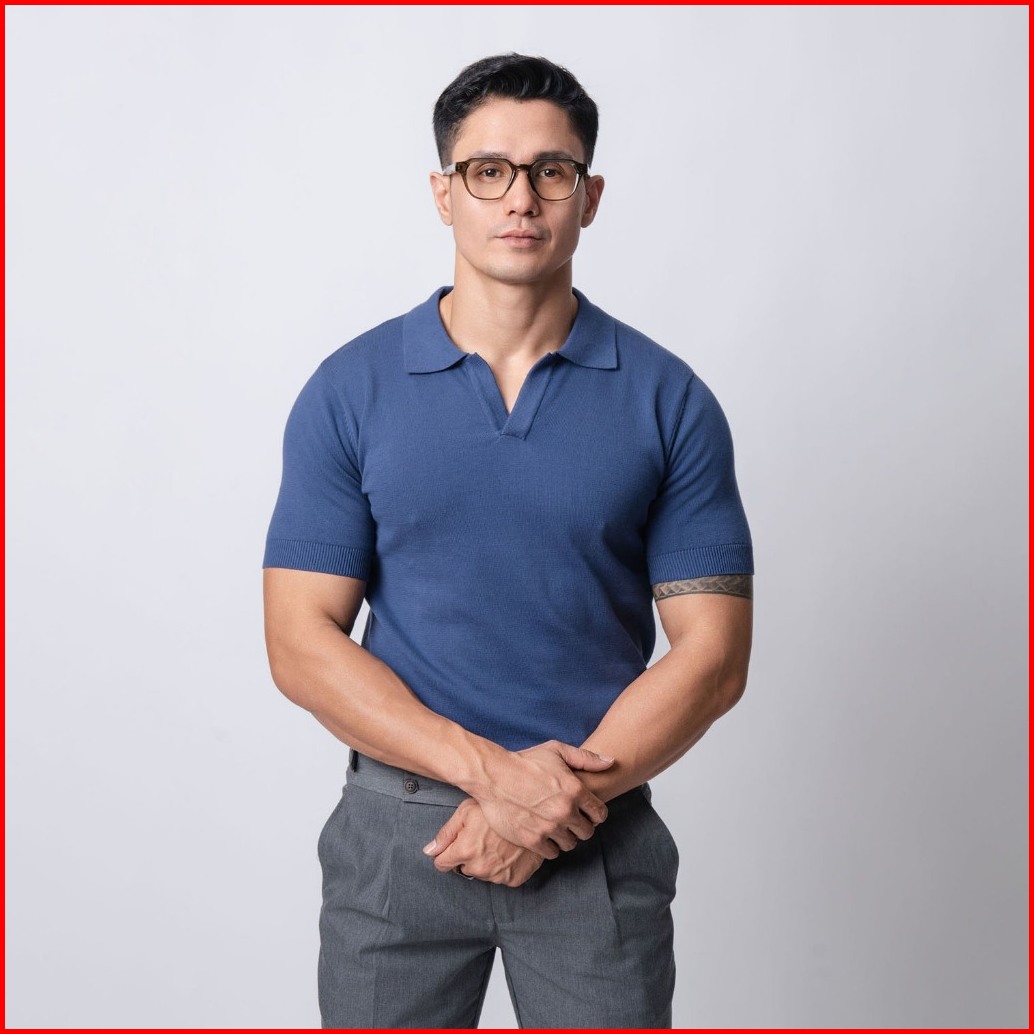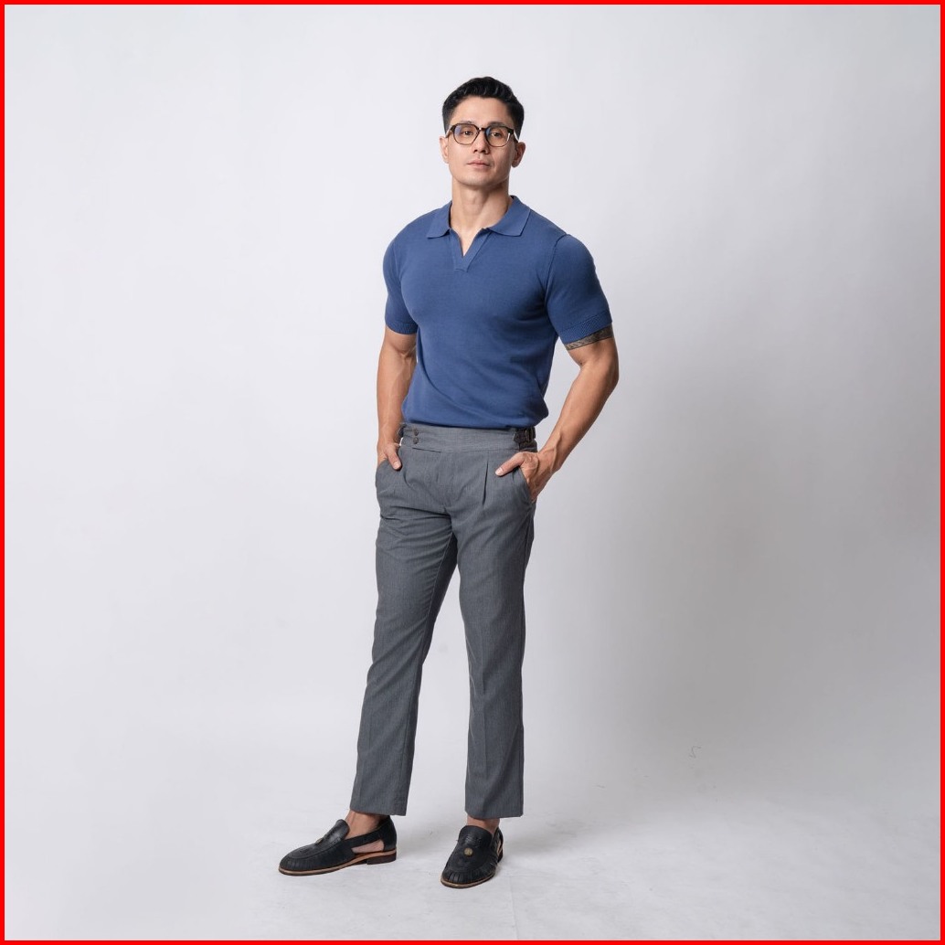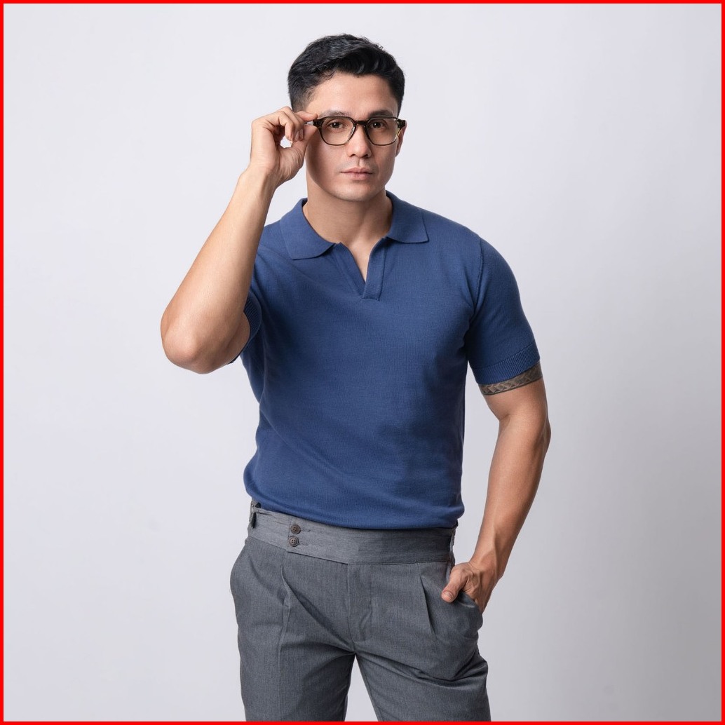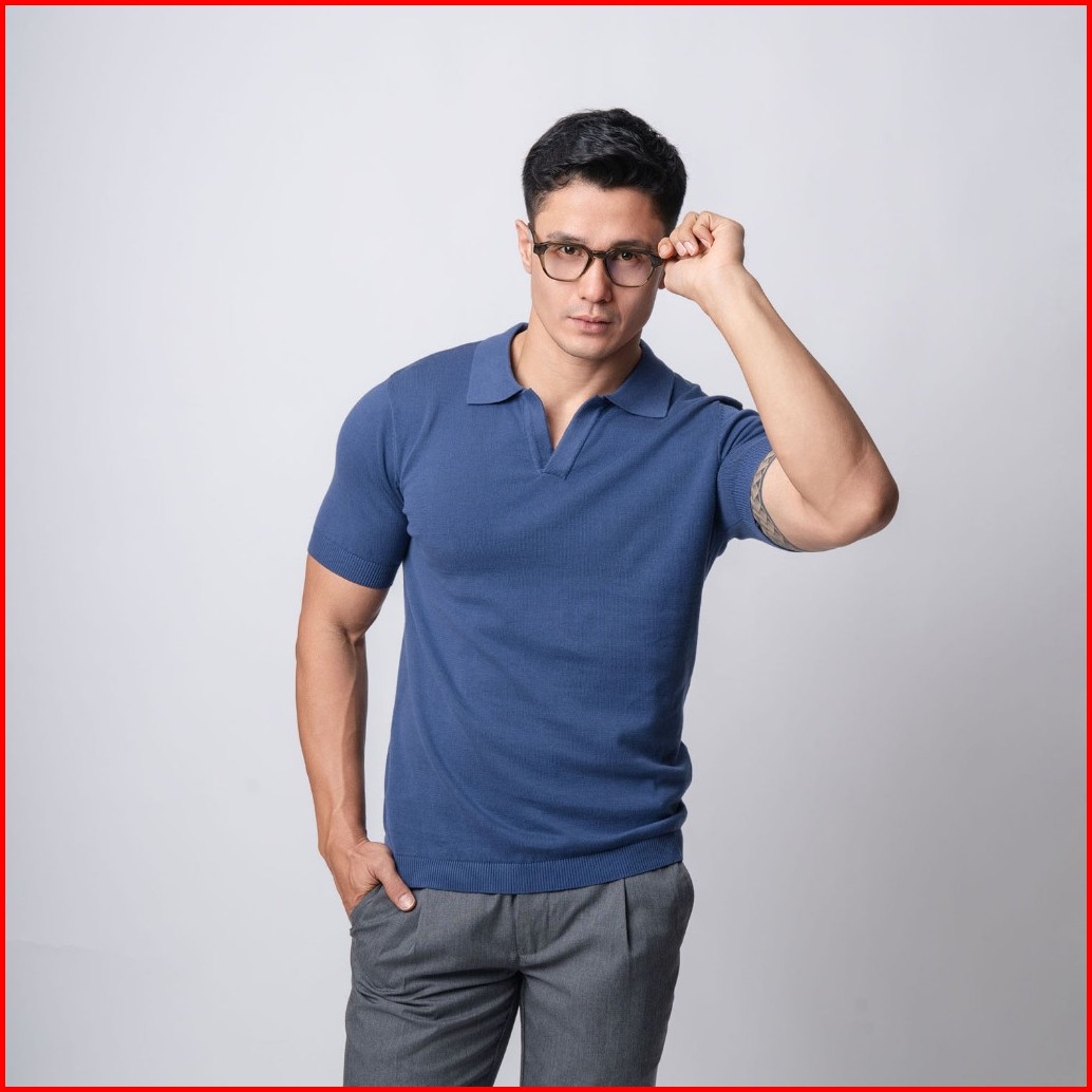 Vengoz Polo Shirt Rajut Pria - Mens Polo Shirts Basic Vneck Knitted Denim Blue