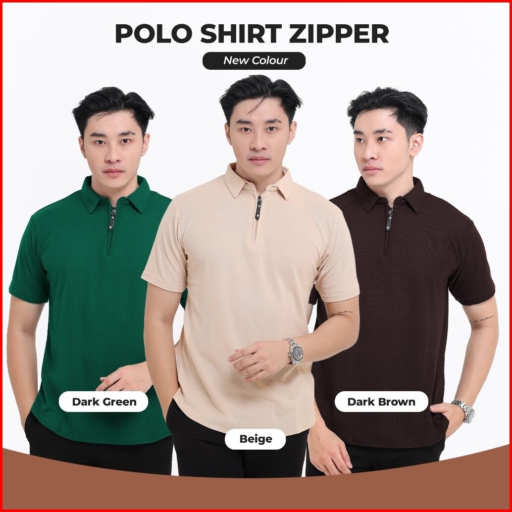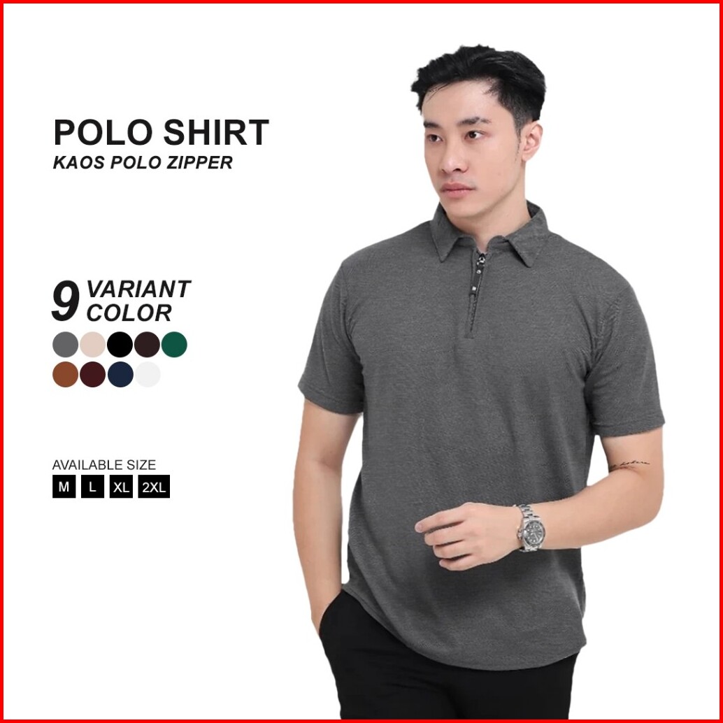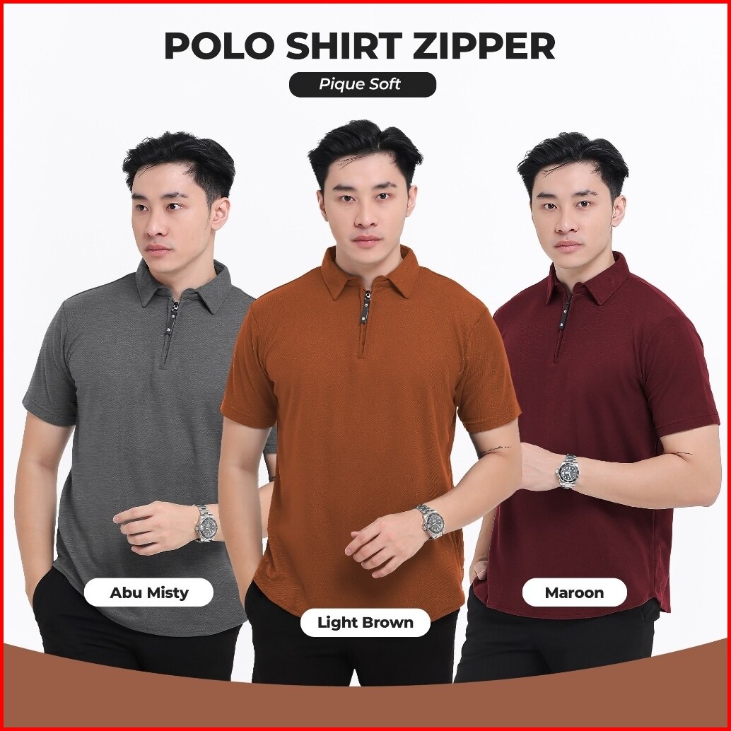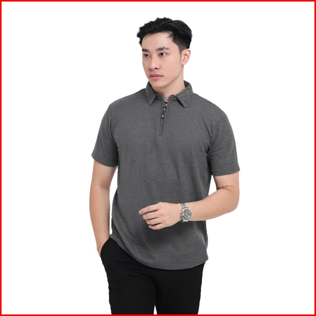Broguy Kaos Polo Shirt Pria Kerah Lengan Pendek Zipper - Abu Misty