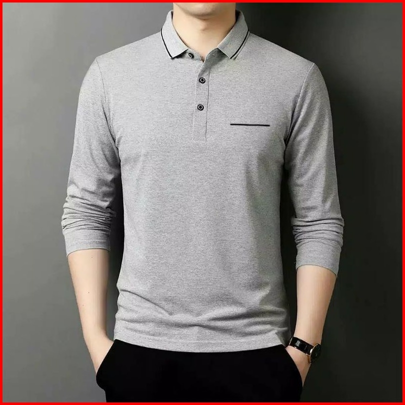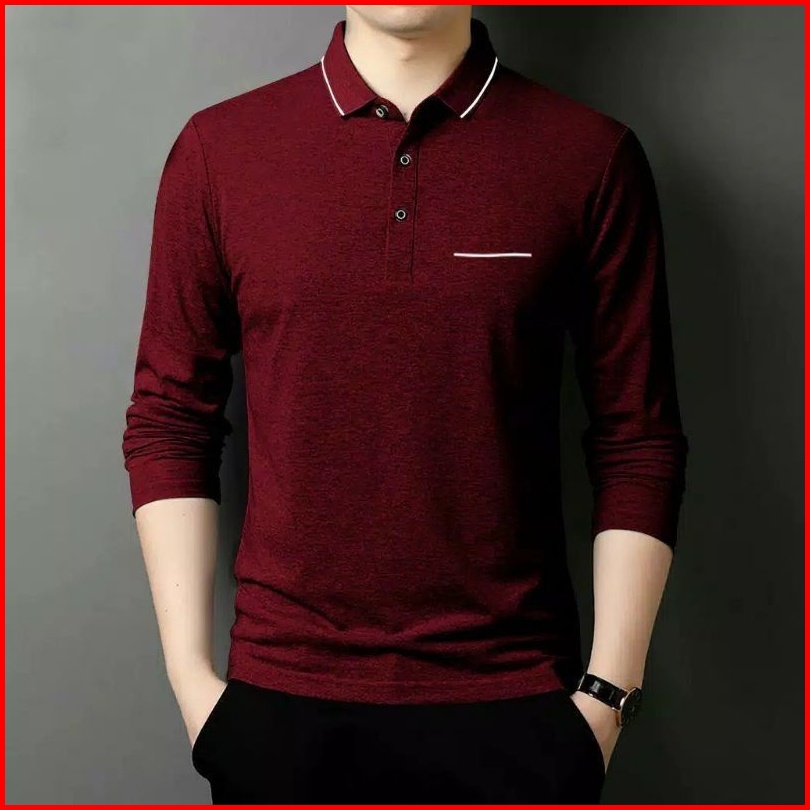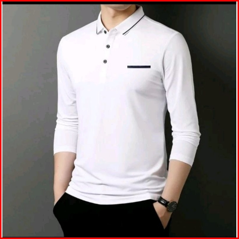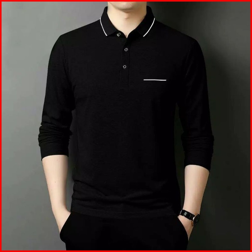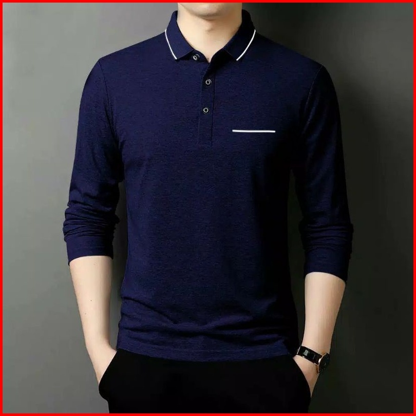 Kaos Berkerah Kaos Polo Lengan Panjang Pria Bahan Cotton Combed Premium