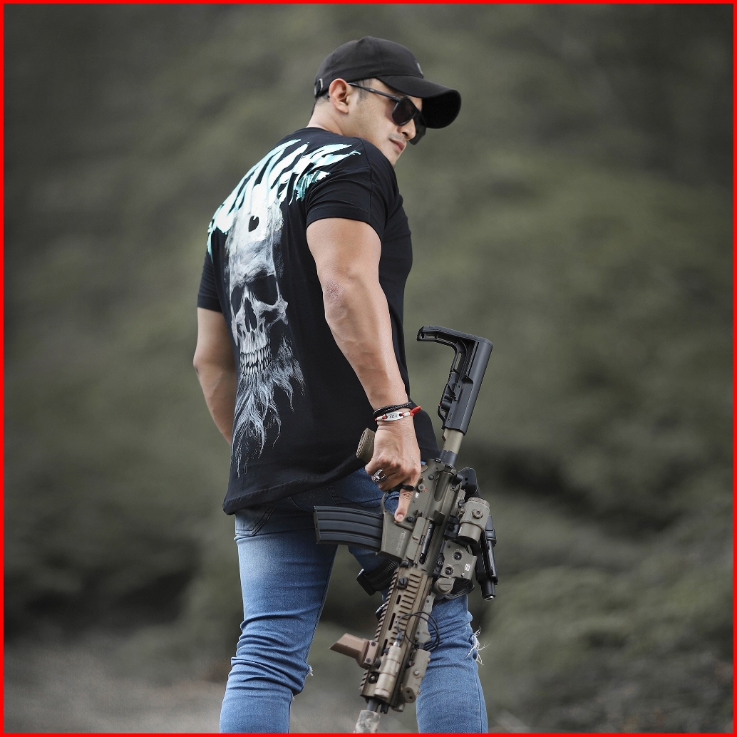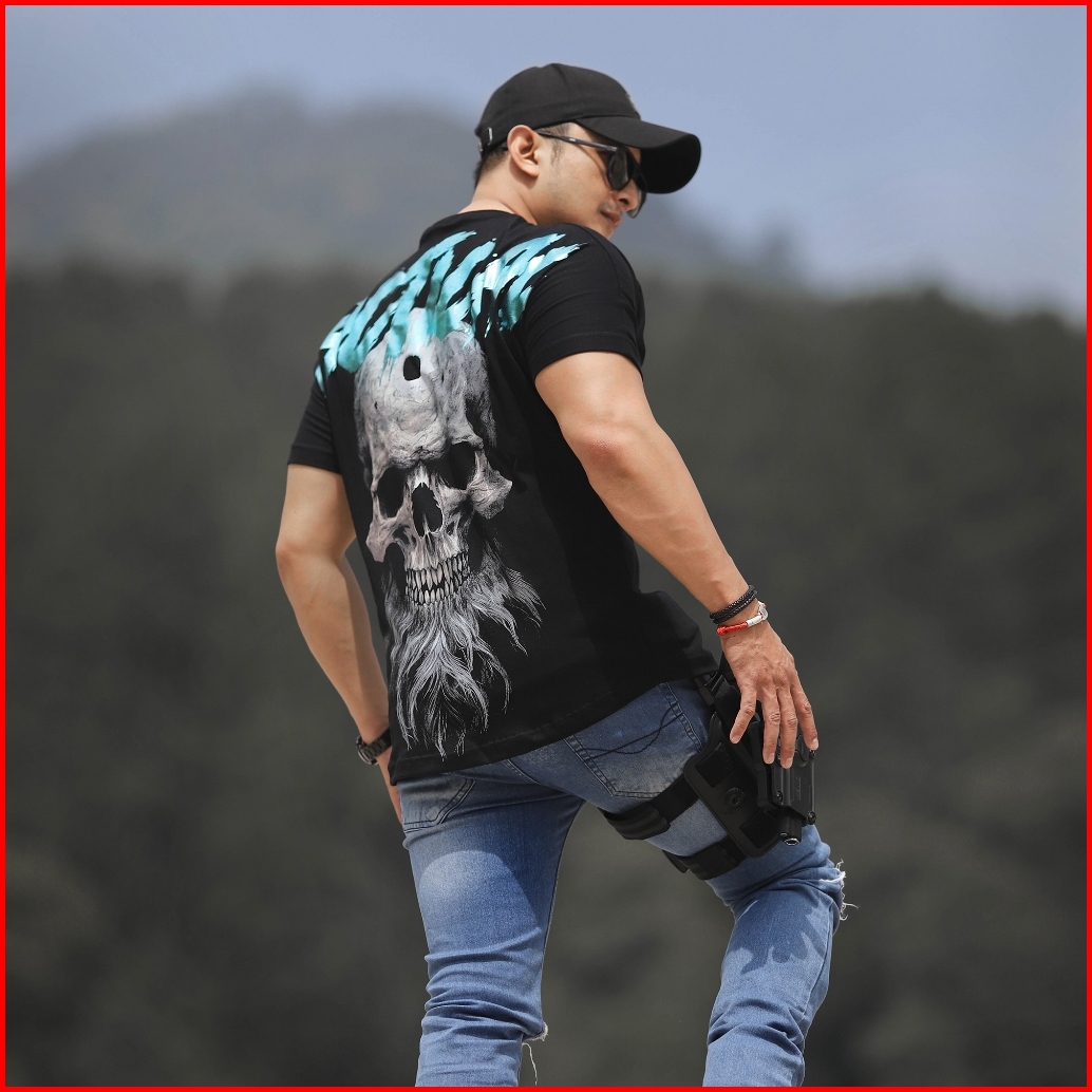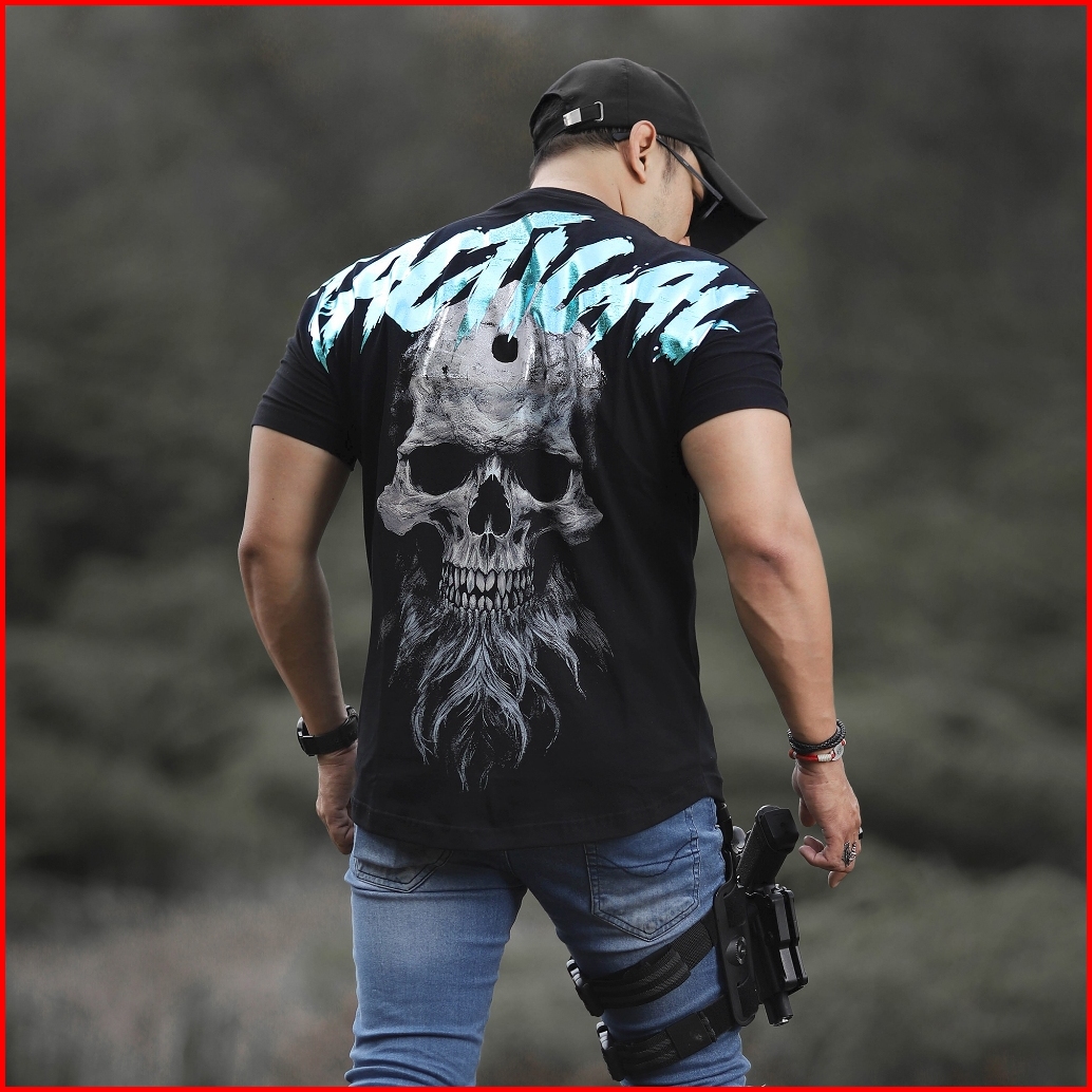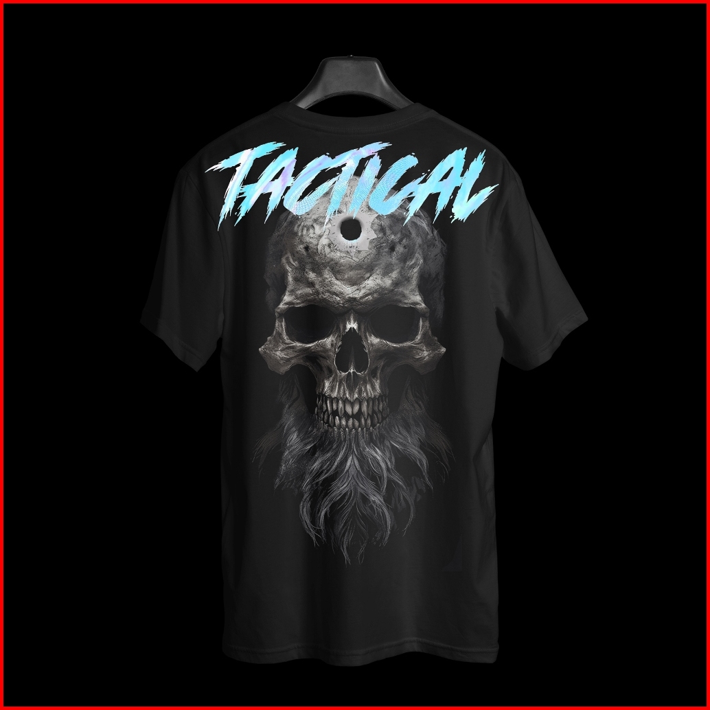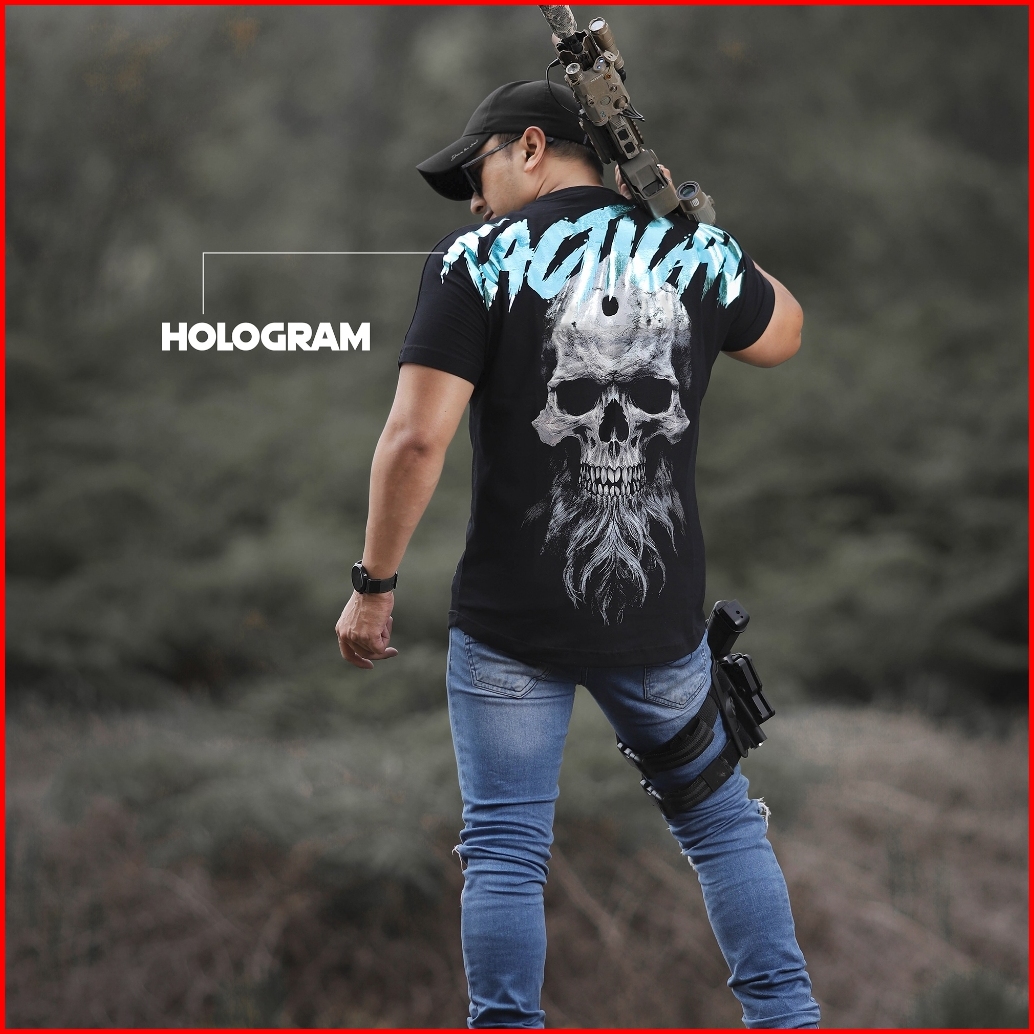 Kaosbos.id - Kaos Distro Tactical Hitam Tengkorak Hologram